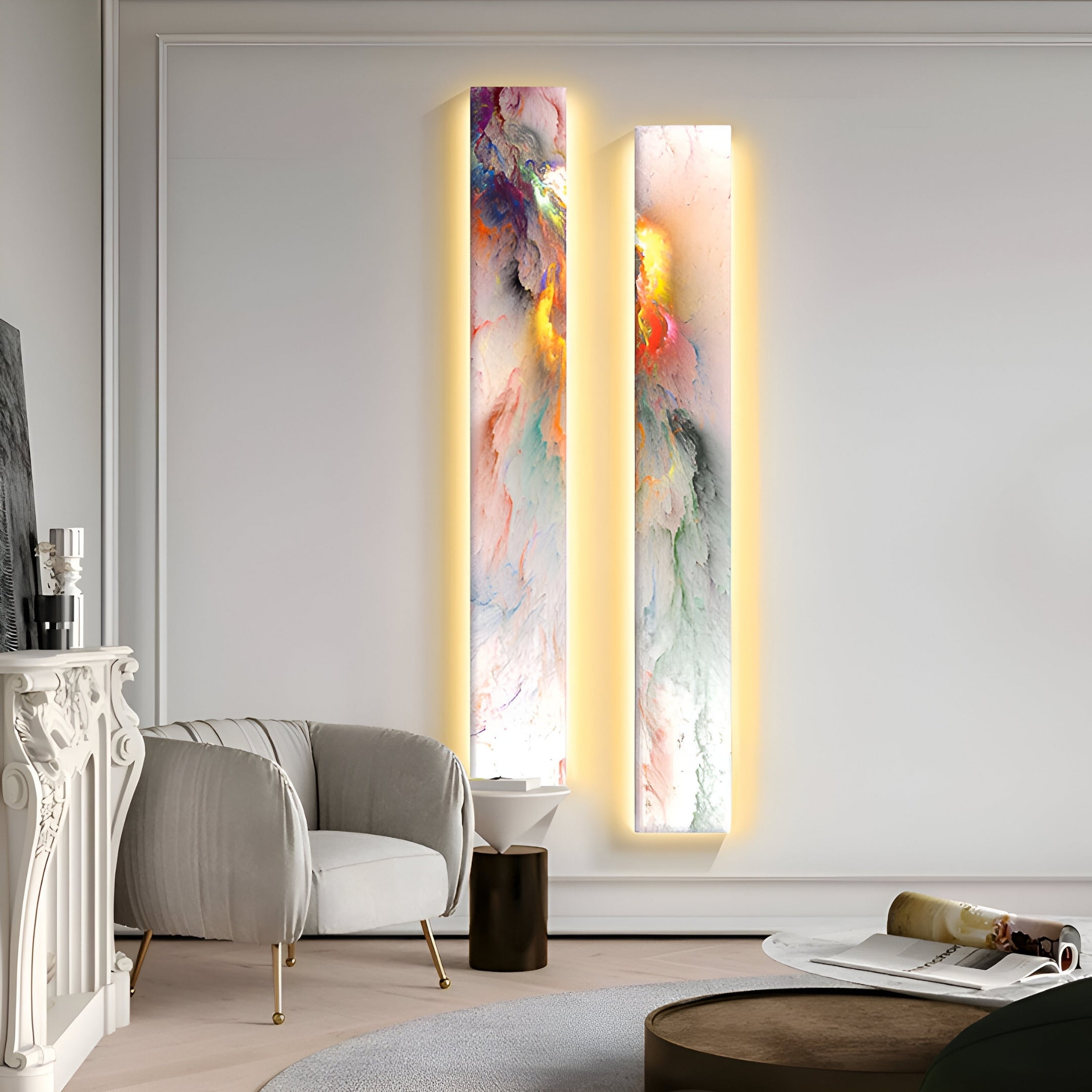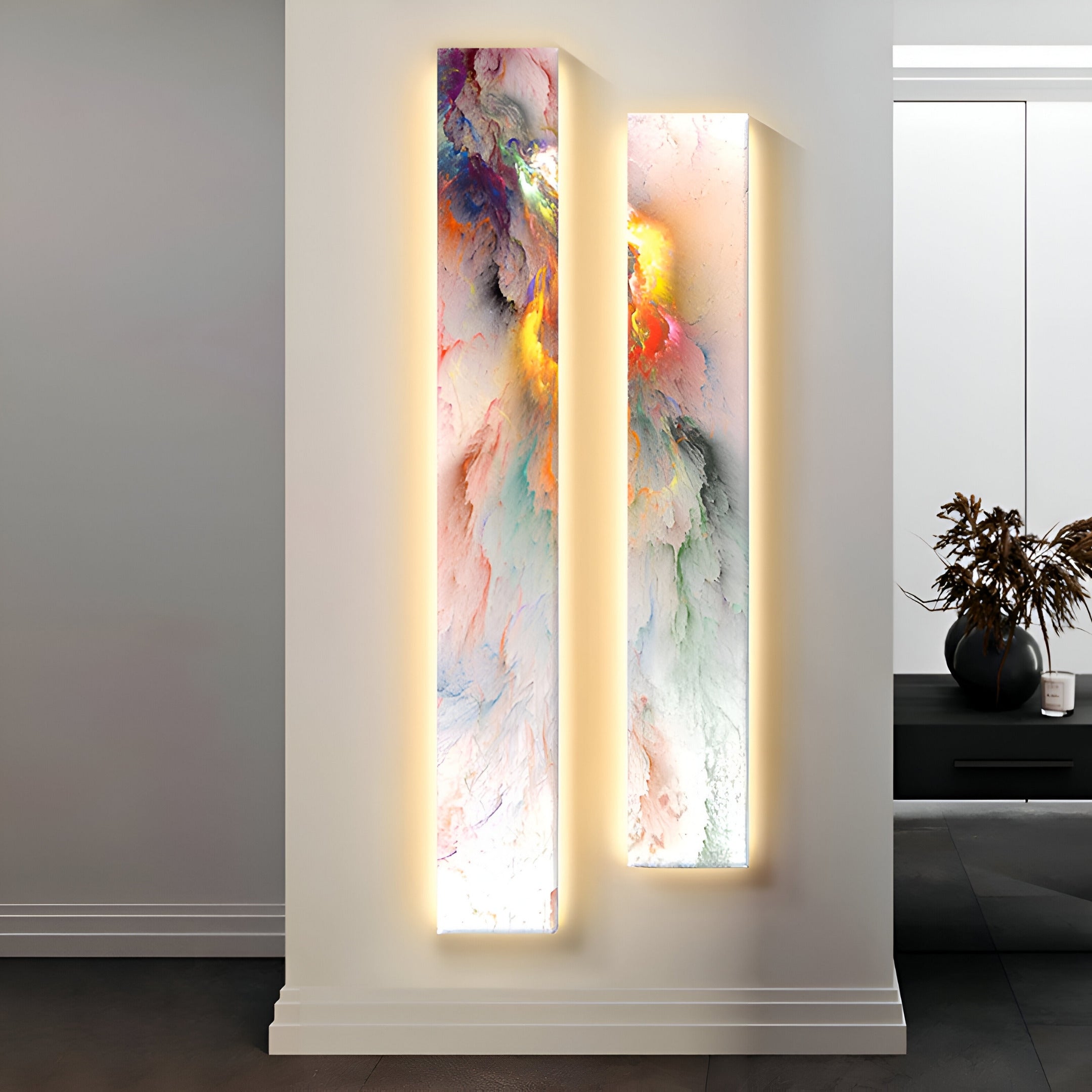 This art piece enhances interiors with a graceful visual flow, creating an atmosphere of calm sophistication in living rooms, bedrooms, and stylish commercial spaces. The harmonious blending of colours evokes a soothing presence, making it a versatile decor choice. Displayed individually or alongside other artworks, it enriches the space with its dreamy aesthetic. The LED option introduces a warm glow that enhances the pastel tones, creating an inviting environment. The non-lit version allows the gentle hues to stand out naturally, offering a serene yet impactful presence that complements any modern space.