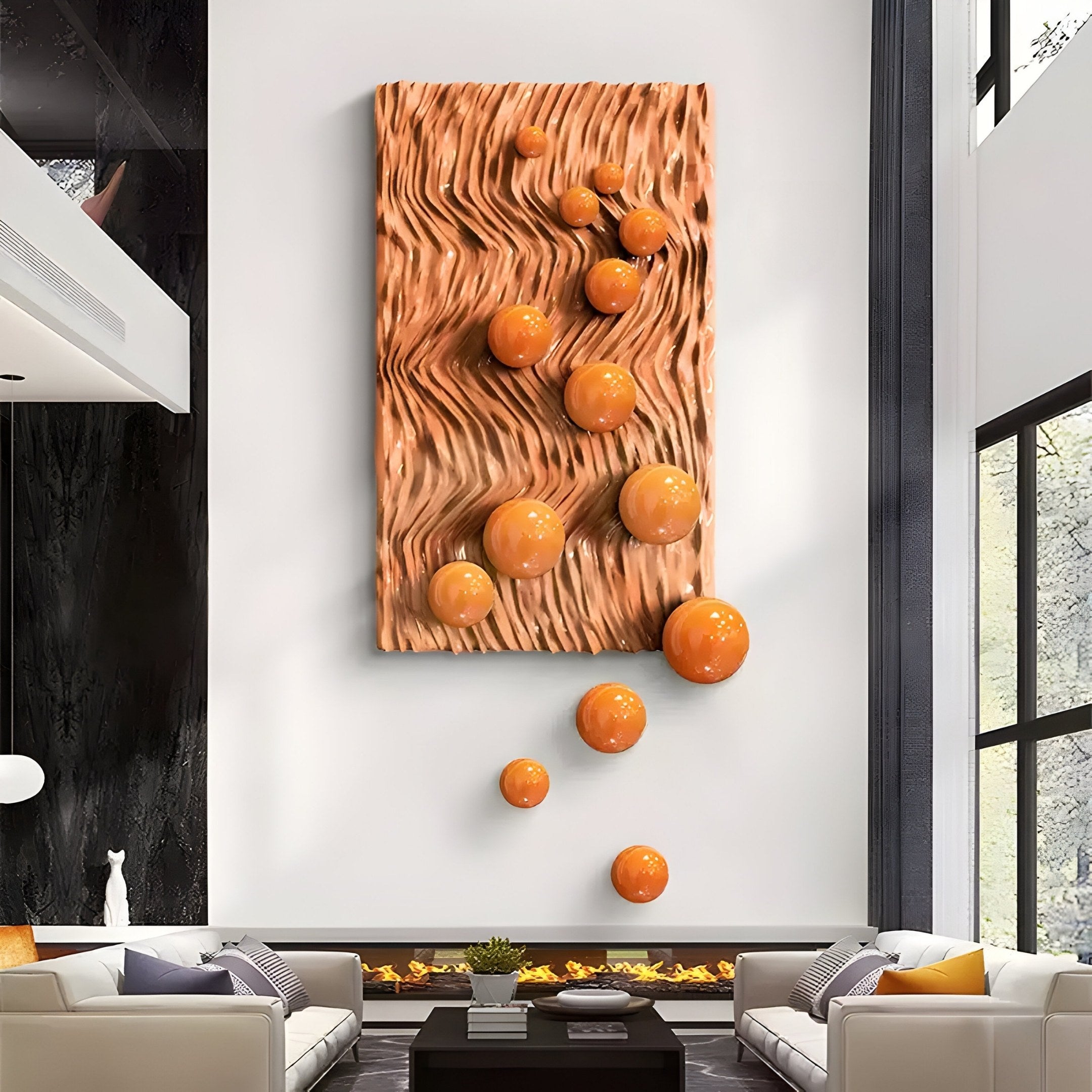 Add Wave-Like Flow and Glossy Spheres with Fluxion Orange 3D Wall Art