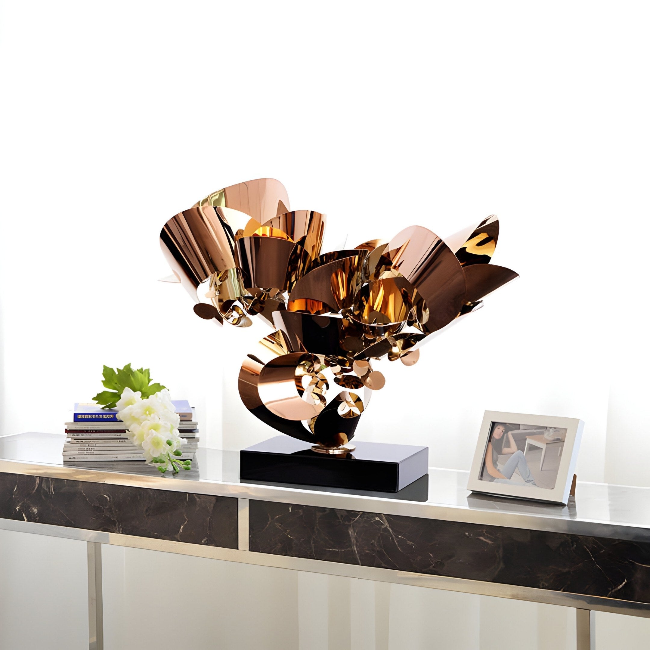 The Petal Fusion Copper sculpture is designed for versatility, making it suitable for a variety of settings. Its weather-resistant stainless steel construction ensures that it maintains its stunning appearance over time, whether placed indoors or outdoors. Ideal for enhancing serene gardens, stylish patios, elegant foyers, or contemporary office spaces, this sculpture seamlessly integrates with diverse architectural styles and natural landscapes. The intricate organic design and polished copper finish not only serve as a focal point but also contribute to creating a tranquil and inviting atmosphere. Whether you're an art lover or seeking to add a distinctive decorative element to your environment, the Petal Fusion Copper Organic Stainless Steel Sculpture offers timeless beauty and exceptional craftsmanship.
