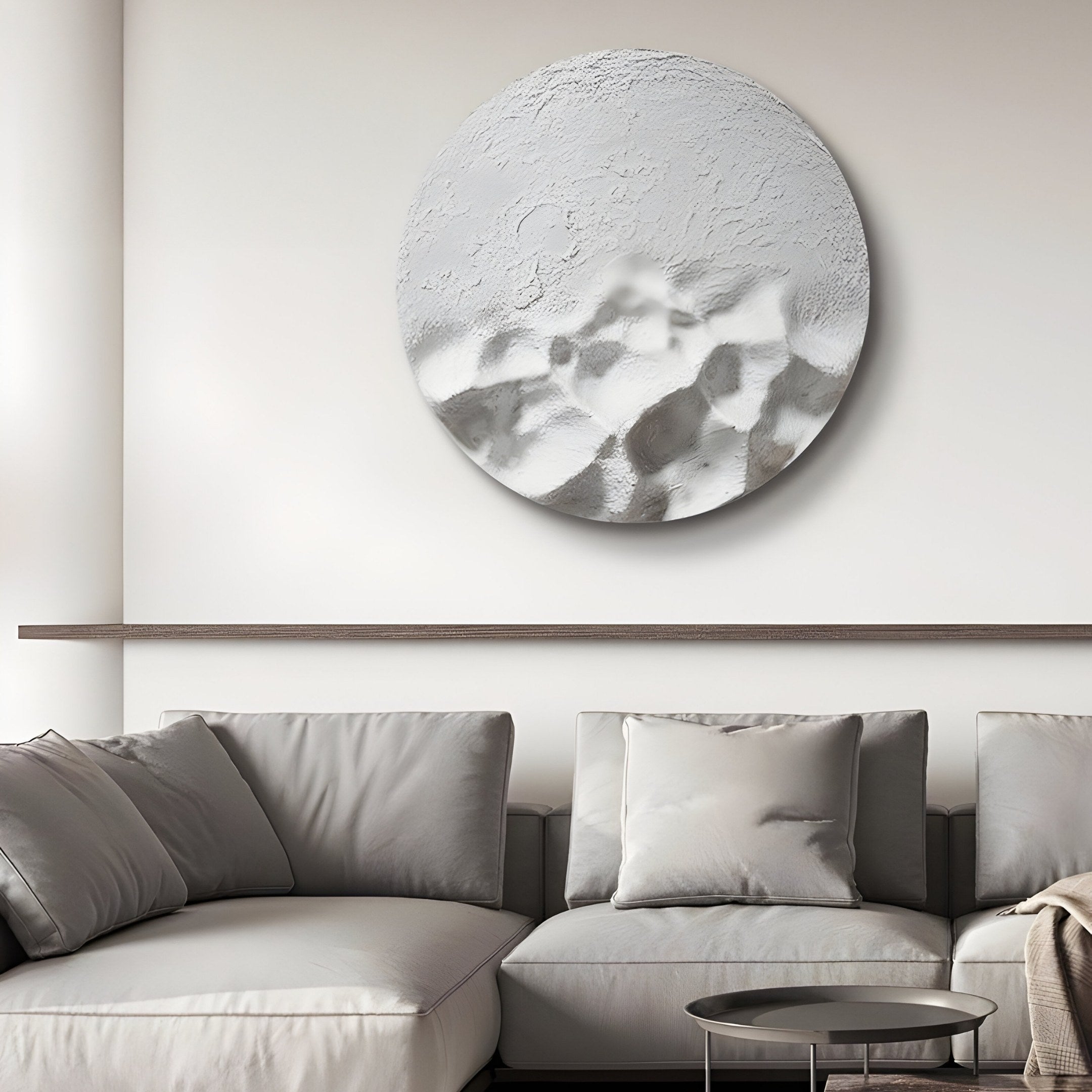The Solivis Frost White Round 3D Wood Relief Wall Art introduces a calm, nature-inspired element to indoor spaces. Carved from wood and finished with a subtle, frosted white tone, this circular panel features softly raised contours that mimic mountainous terrain or shifting landscapes. The hand-painted surface, reminiscent of a wabi-sabi aesthetic, provides a gentle texture that invites closer inspection. Its neutral hue works well in minimalist, contemporary, or even eclectic interiors, allowing the piece to blend in quietly or serve as a focal point without dominating the room. As natural or artificial light moves across its surface, the raised sections cast delicate shadows and highlights, adding a sense of understated motion.