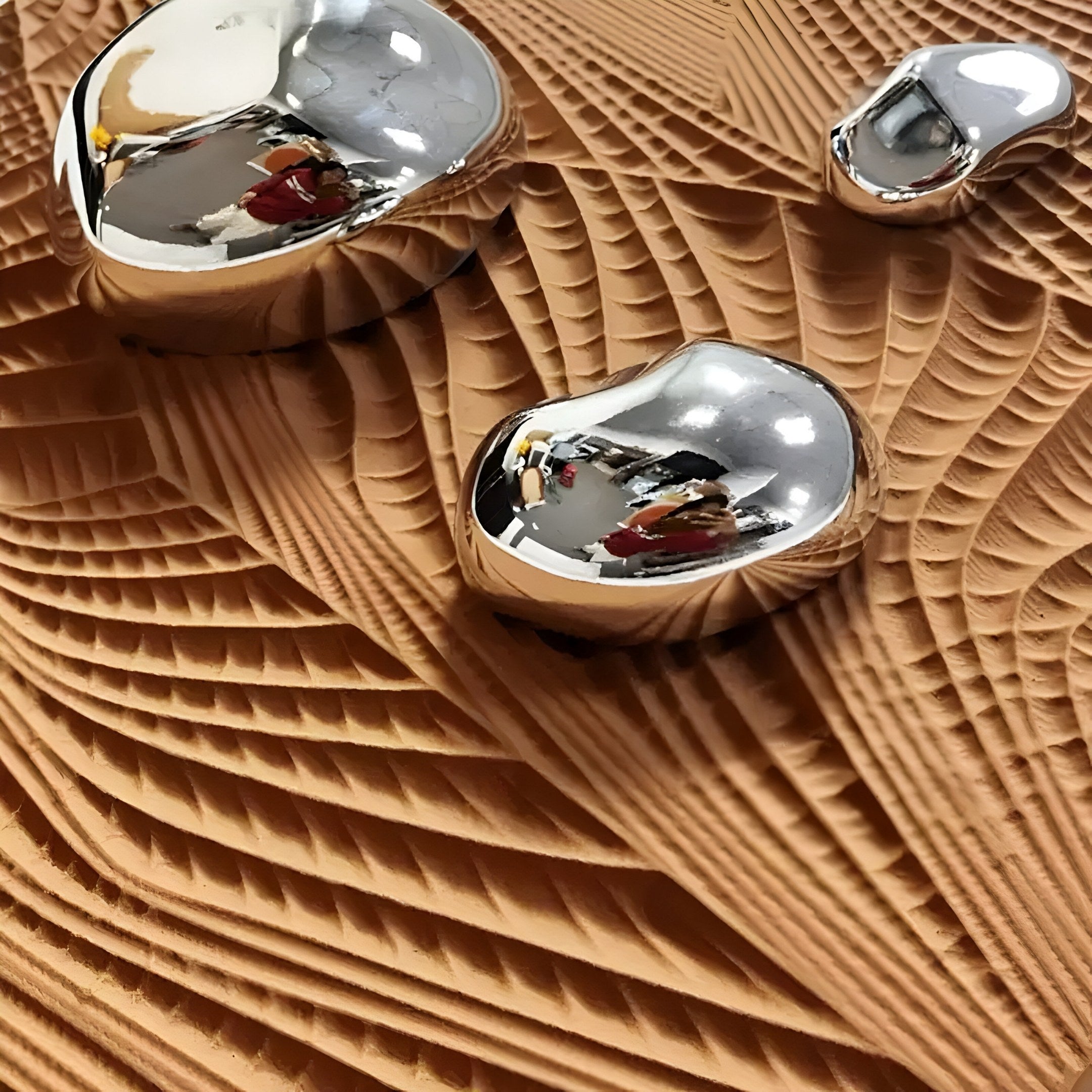 Positioned in a living room, hallway, or reception area, this piece lends a grounded feel without overwhelming surrounding décor. The resin-plated metallic accents reflect nearby hues, creating shifting highlights that change with the light. Solid craftsmanship ensures the wood relief maintains its crisp edges, resisting everyday wear. Thanks to the balanced blend of earthy terracotta and polished metallic forms, the artwork suits a variety of interior styles, from modern minimalism to rustic-chic settings. By pairing gently curved lines with smooth, mirror-like accents, the Verdara Terracotta Wood Relief 3D Wall Art delivers a harmonious statement that draws in viewers for a closer look. Its carefully carved contours, combined with the contrast of matte and reflective finishes, make it a versatile focal point that complements a range of décor choices while adding a warm, tactile quality to any space.