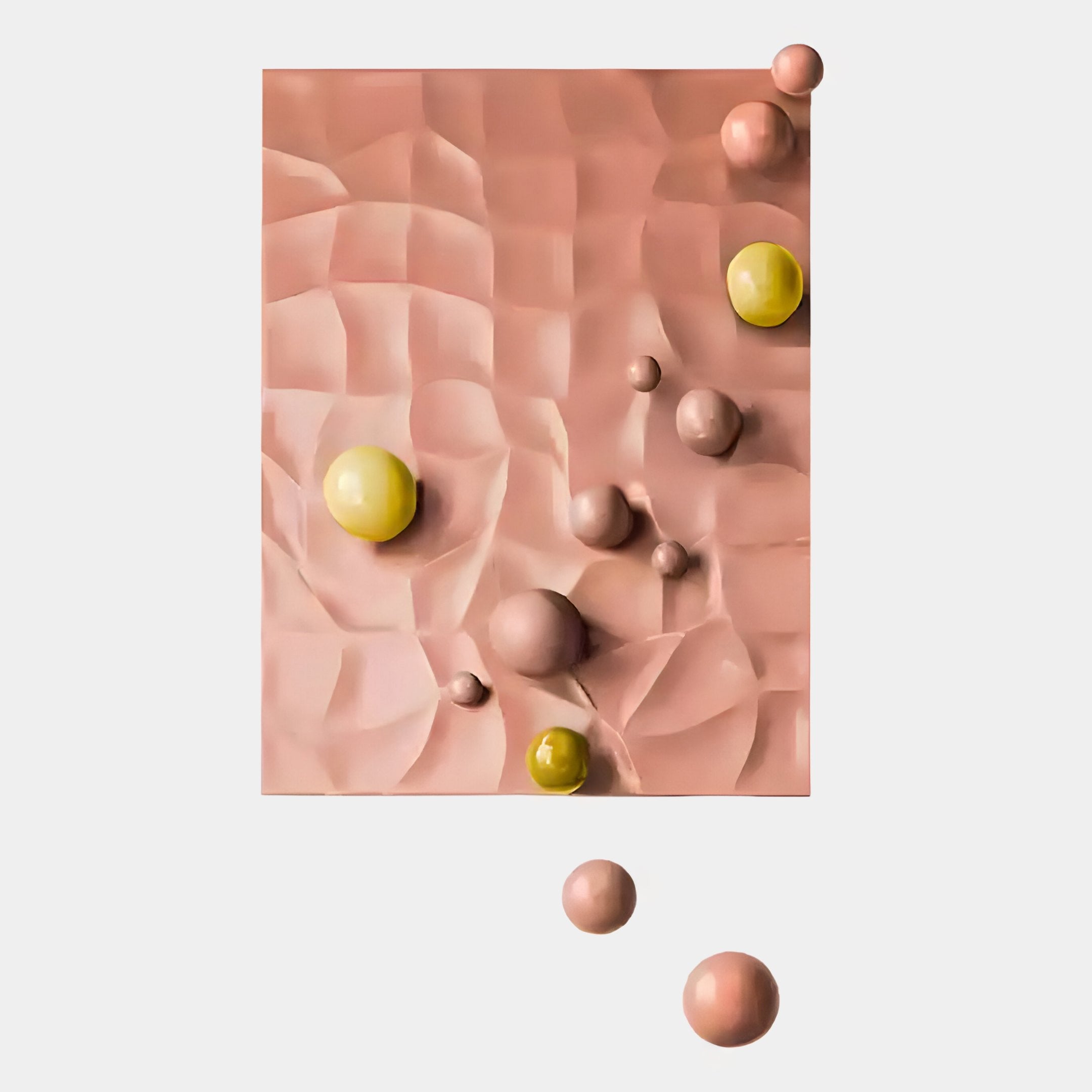 Orbison Peach 3D Wood Relief Wall Art With Floating Metal Ball