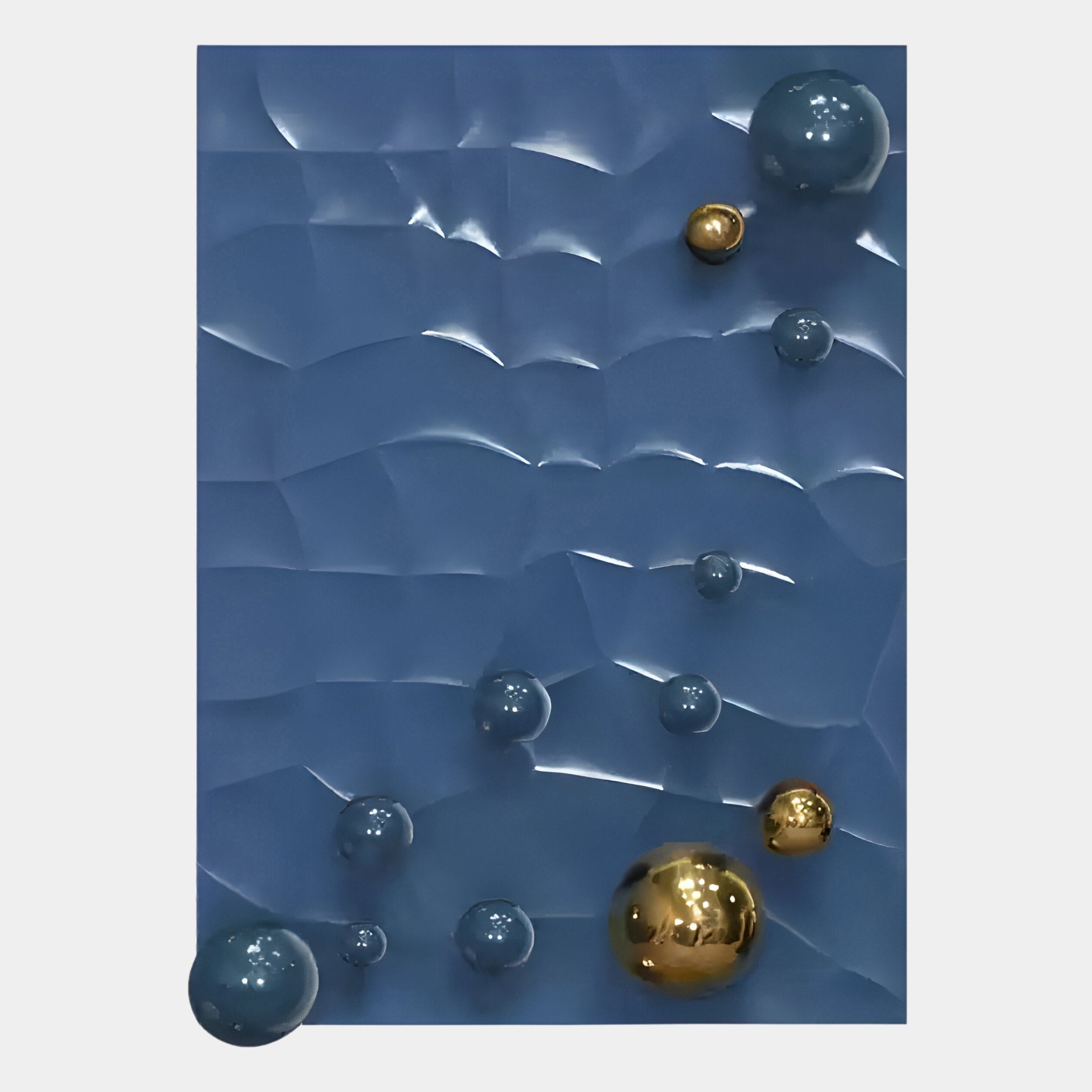 Orbison Blue 3D Wood Relief Wall Art With Floating Metal Ball