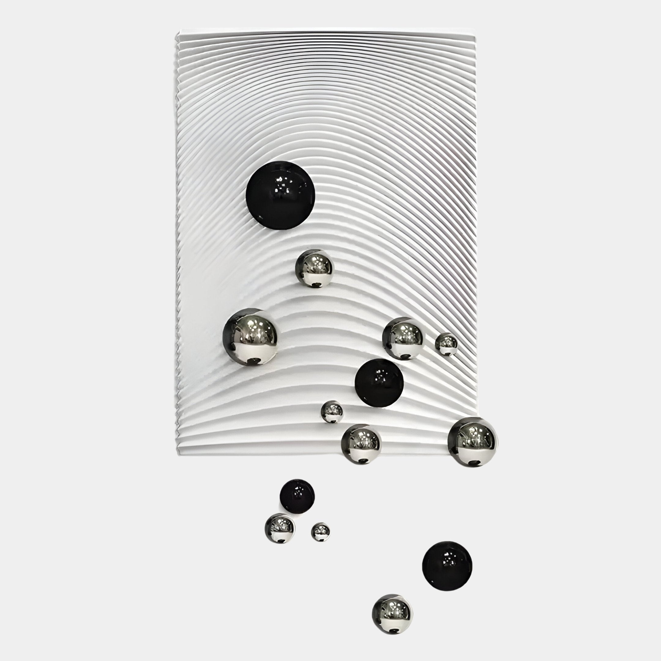 Sphera White 3D Wood Relief Wall Art With Black & Silver Metal Ball