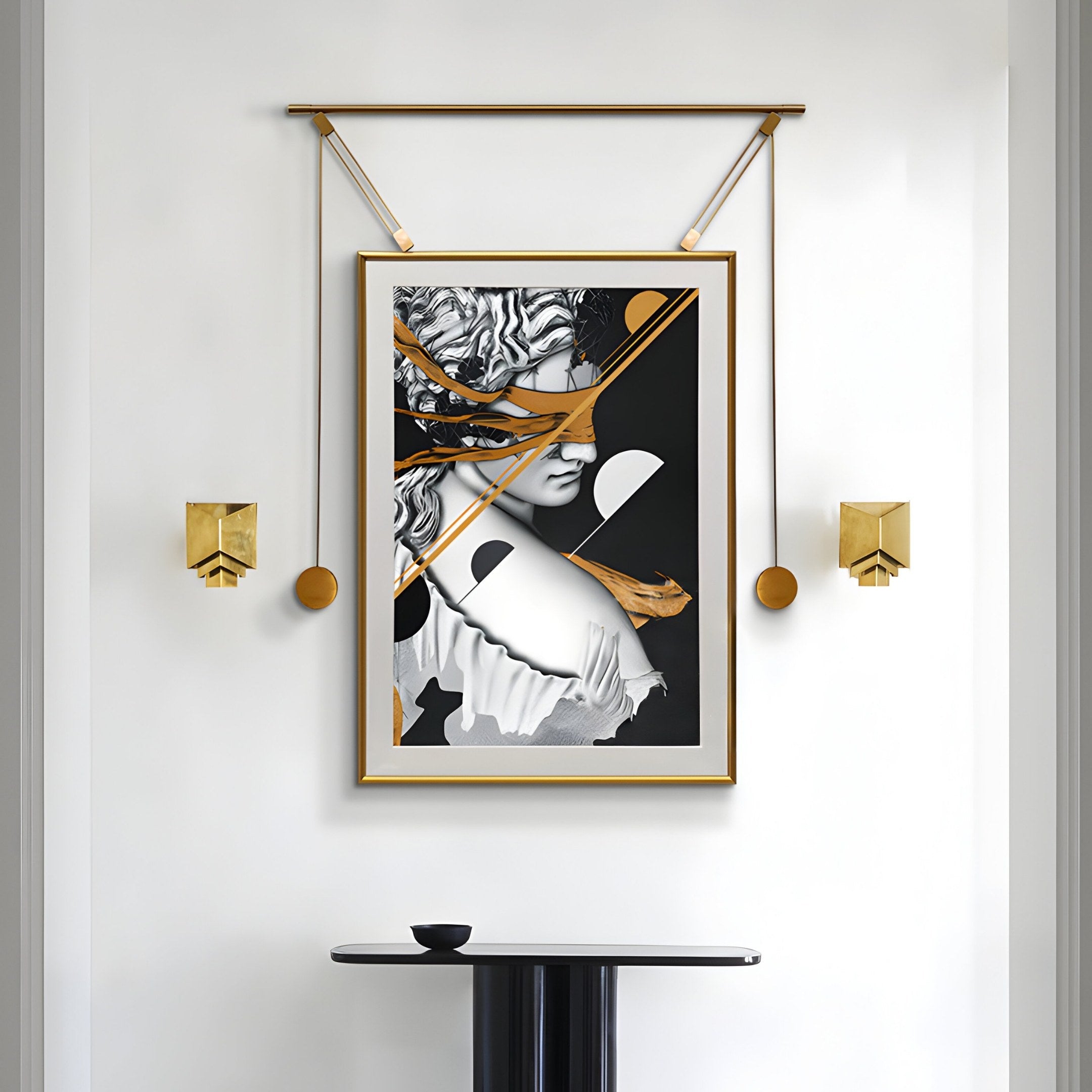 Transform your interiors with this statement artwork that combines classical aesthetics with a modern twist. The gilded accents and sleek frame make it an ideal choice for luxury settings, blending tradition with contemporary charm. Hang the Eterna Classics Wall Art in your living room, entryway, or hotel lobby to create a focal point that sparks conversation. Its clean black-and-white portrait, punctuated by golden hues, complements various styles, from modern minimalism to upscale industrial themes. Built with premium leather and HD printing, it ensures lasting visual appeal, making it perfect for residential and commercial interiors.