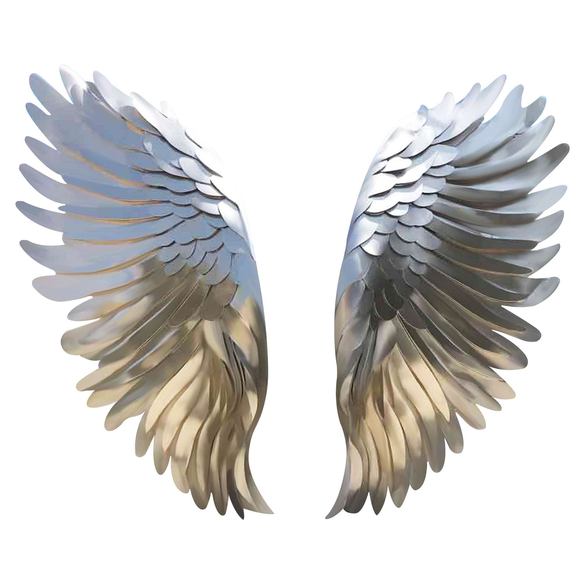 Embodying a sense of grace and elevation, this Stainless Steel Angel Wings Sculpture makes a powerful statement in any setting. The meticulously crafted wings with their layered feathers exude a sense of movement and freedom, symbolizing inspiration and aspiration. Finished in a sleek matte raw stainless steel, this sculpture reflects light beautifully, adding a captivating presence to both outdoor and indoor spaces. Perfect for grand entrances, luxury lobbies, and outdoor plazas, it invites viewers to immerse themselves in its ethereal beauty.