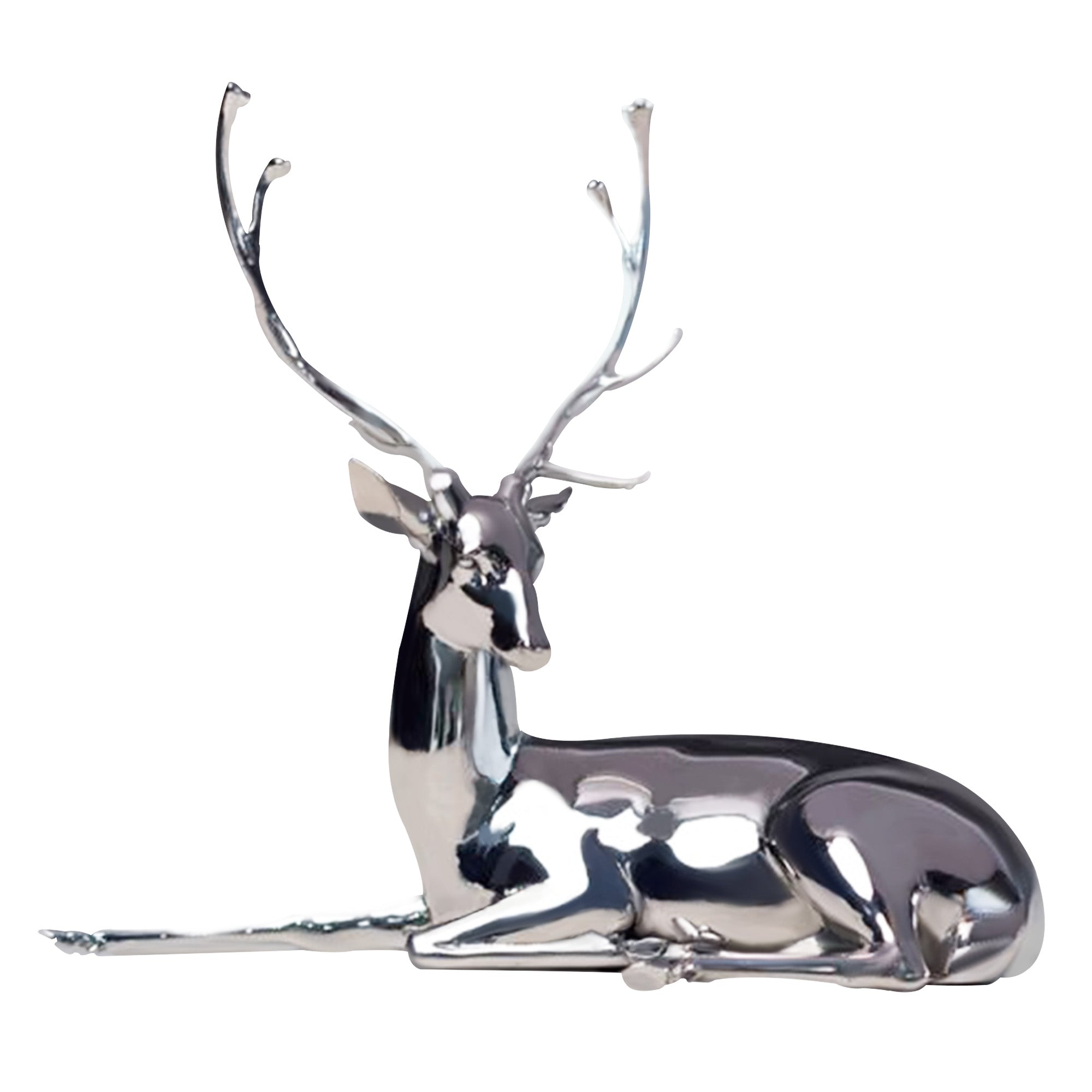 The Modern Mirror Polished Stainless Steel Elk Sculpture is a symbol of grace, strength, and tranquility. This sleek, reflective sculpture captures the majestic essence of an elk in a resting position, with intricate antlers and a smooth, polished body that mirrors its surroundings. The use of mirror-polished stainless steel brings a contemporary twist to a classic form, creating a visually stunning piece that is perfect for both indoor and outdoor settings. Its refined appearance makes it an ideal centerpiece for luxury interiors or as a statement piece in gardens or corporate spaces.