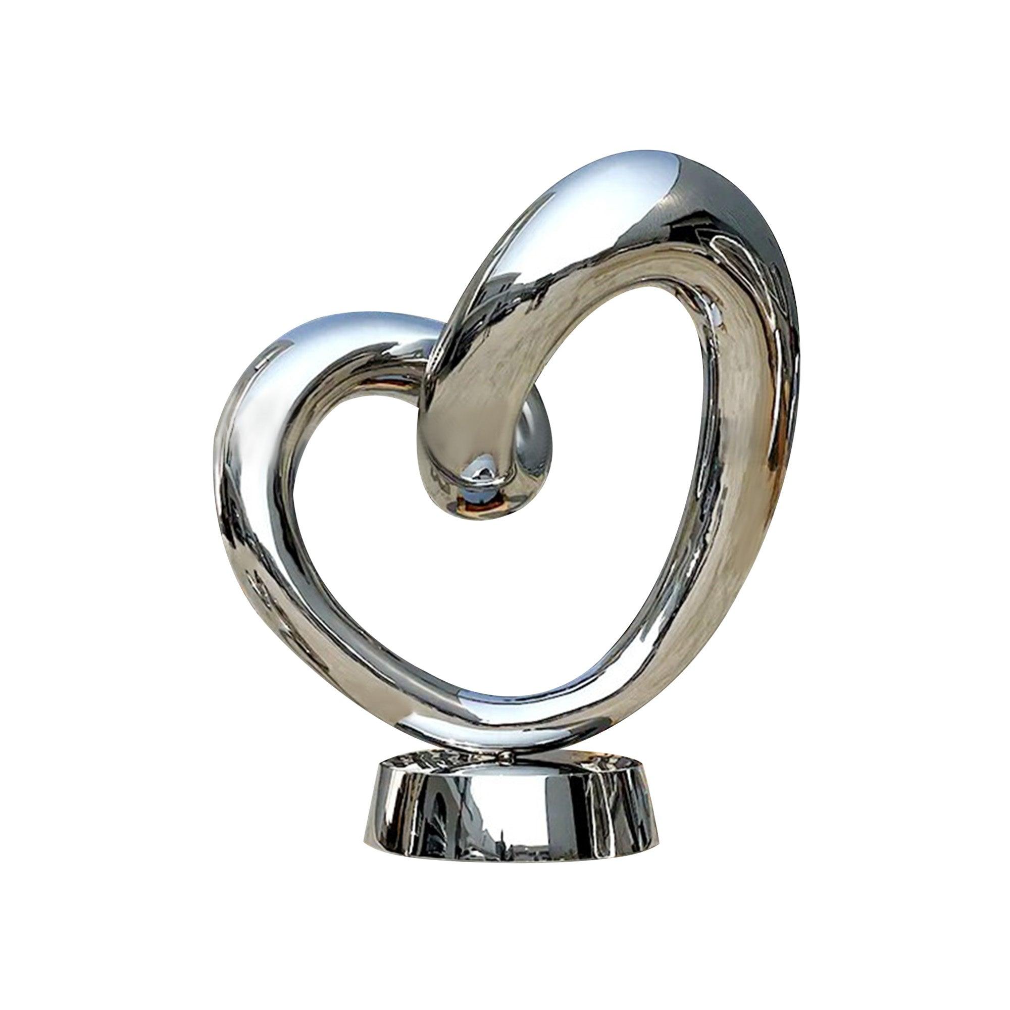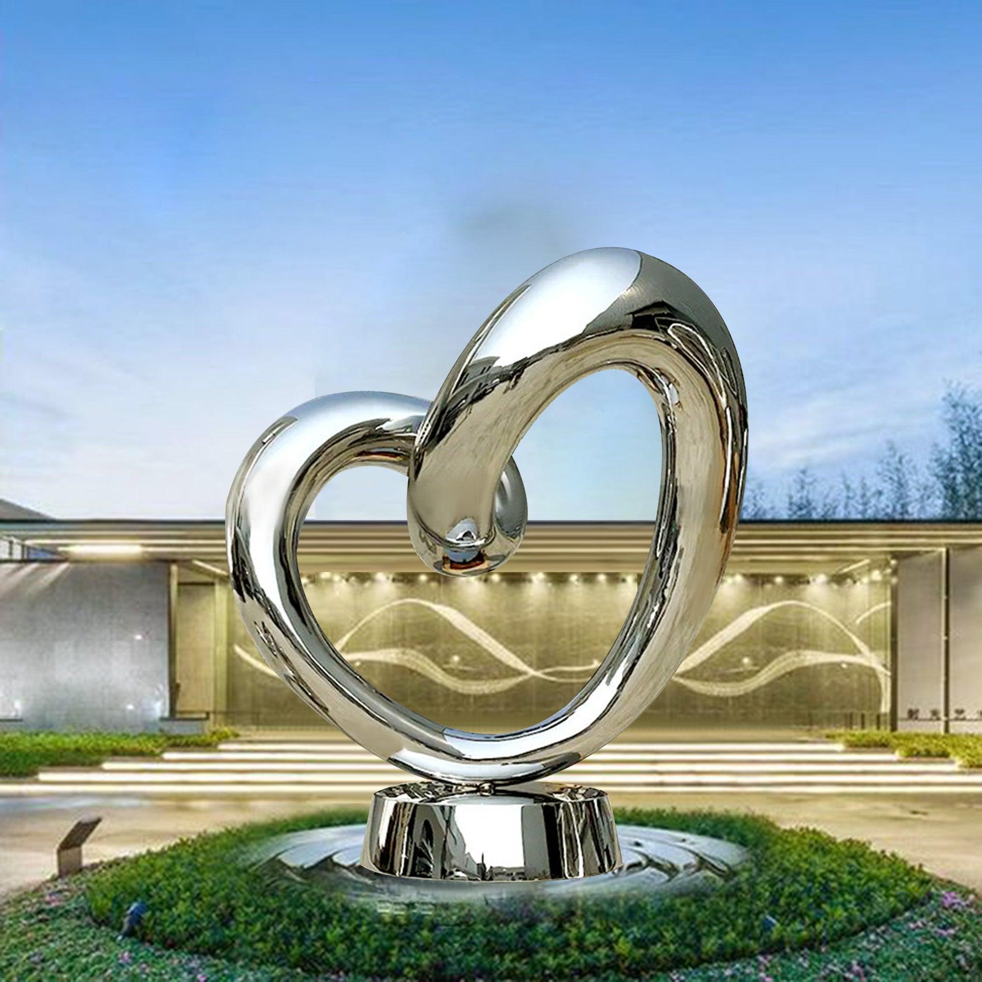 This Mirror Polished Stainless Steel Heart Sculpture is a captivating work of art that symbolizes love, connection, and unity. Its fluid, intertwined design offers a modern take on the heart shape, creating a visually striking piece that complements both outdoor and indoor spaces. The mirror-polished surface reflects its surroundings, inviting viewers to engage with the sculpture as it mirrors light, movement, and nature. Ideal for parks, gardens, public squares, and luxury residences, this sculpture adds a touch of elegance and emotional resonance to any setting.