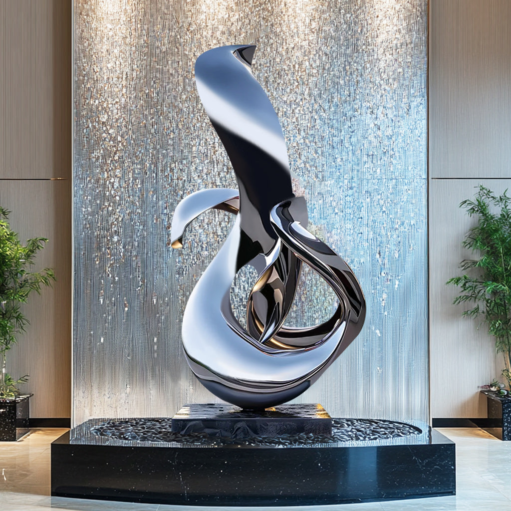 This Sleek Abstract Stainless Steel Sculpture exudes modern elegance and sophistication with its fluid, dynamic curves. Crafted from durable #304 stainless steel and polished to a mirror-like finish, this sculpture reflects light beautifully, creating an eye-catching centerpiece for any space. The abstract form suggests movement and fluidity, adding a touch of luxury to contemporary interiors, lobbies, and outdoor landscapes. Ideal for settings that appreciate refined art, this piece brings style and lasting beauty to its surroundings.