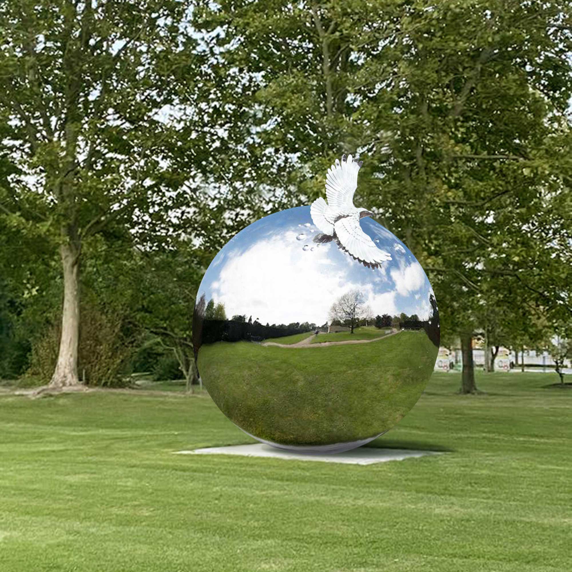 PEGASUS Mirror Polished Stainless Steel Eagle Sphere Garden Sculpture FS-082