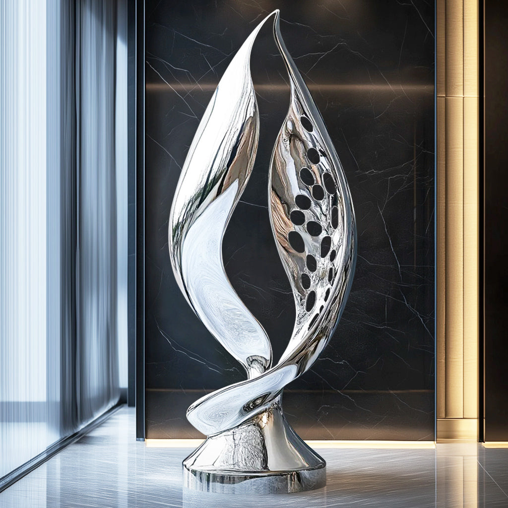 PEGASUS Custom Abstract Leaf-Inspired Stainless Steel Indoor Sculpture with Black Base FS-134