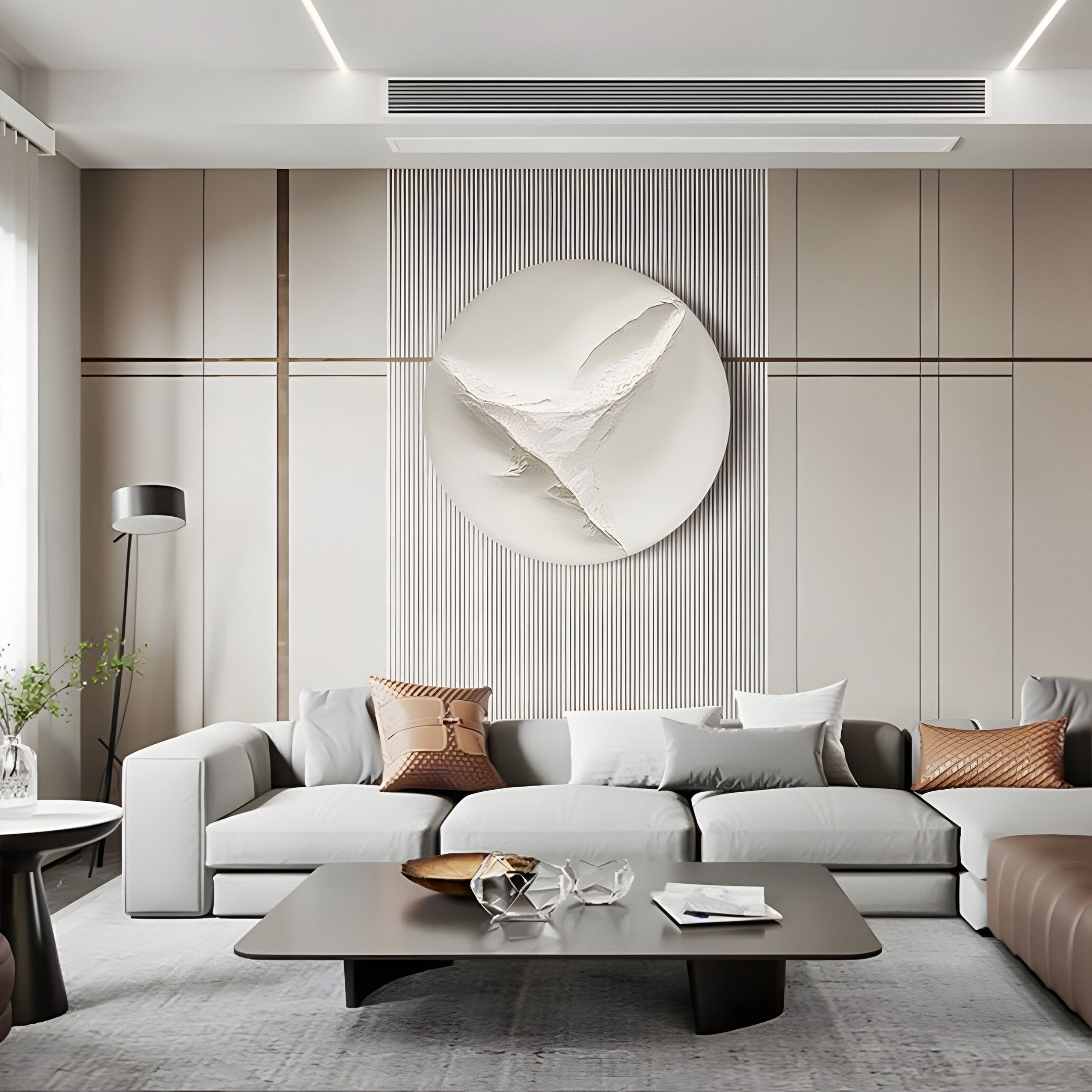 The Selene III White Sandstone Textured 3D Wood Relief Wall Art offers a tranquil, nature-inspired addition to indoor spaces. Carved from wood and coated in a white, sandstone-like finish, this circular panel features a raised contour that suggests the organic lines of cliffs or flowing drifts. Its softly textured surface encourages a closer look, while the neutral hue allows the piece to blend with subdued décor or provide a gentle contrast in more colourful rooms. As daylight shifts throughout the day, the elevated sections cast delicate highlights and shadows, adding a low-key sense of movement. Whether placed in a living room, hallway, or bedroom, the overall design maintains a calm yet intriguing presence.