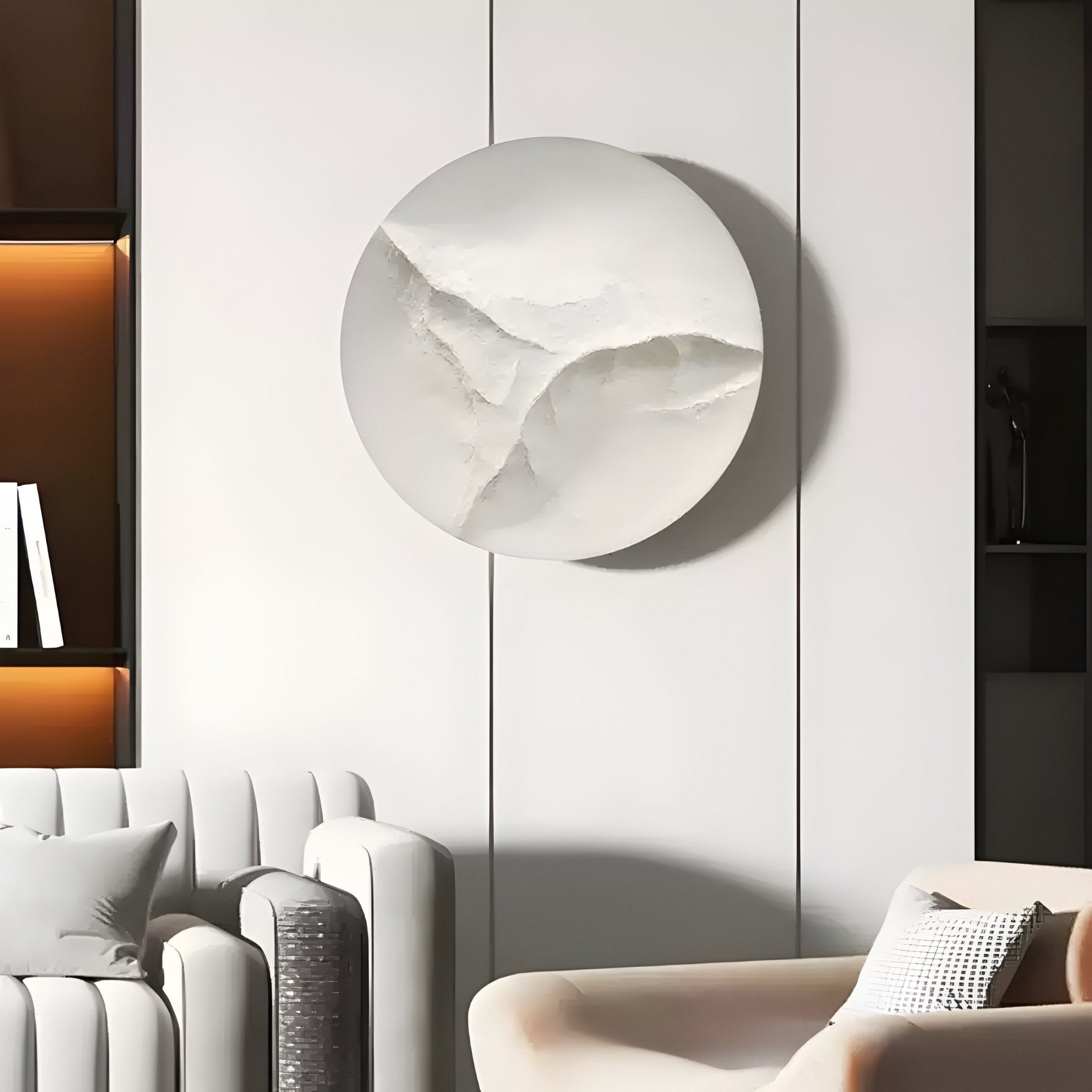 Created for indoor display, the panel suits those who favour understated décor that still offers visual interest. The circular format sets it apart from conventional rectangular frames, while the carved shapes suggest a low-key wave-like energy. If you appreciate an approach that blends smooth curves with a soft finish, the Selene V wall art could align with your taste. Its raised areas provide enough texture to catch the eye, yet the overall palette remains balanced. Over time, it remains a dependable part of your home, reflecting a preference for gentle lines and a thoughtful approach to design. Constructed with durable materials, this piece can adapt to shifting trends, maintaining its understated appeal and quietly elevating the ambience of your chosen space.