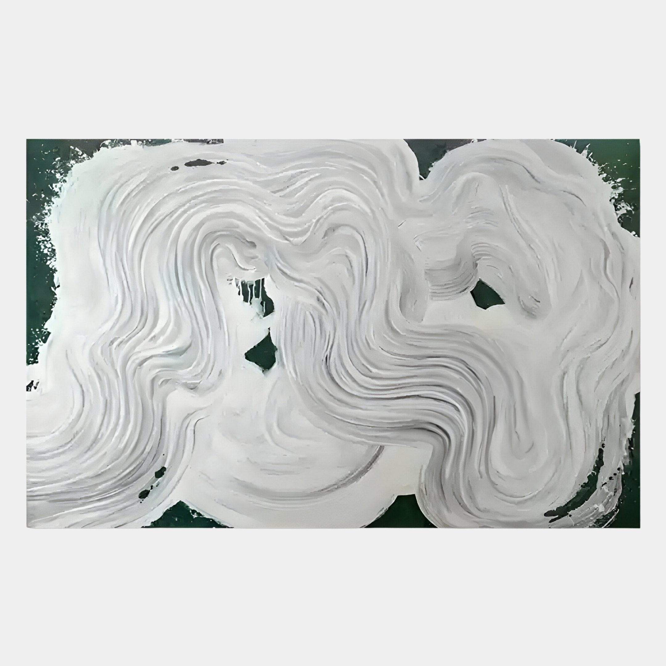 Calmant Green & White Abstract Hand-Painted Wall Art