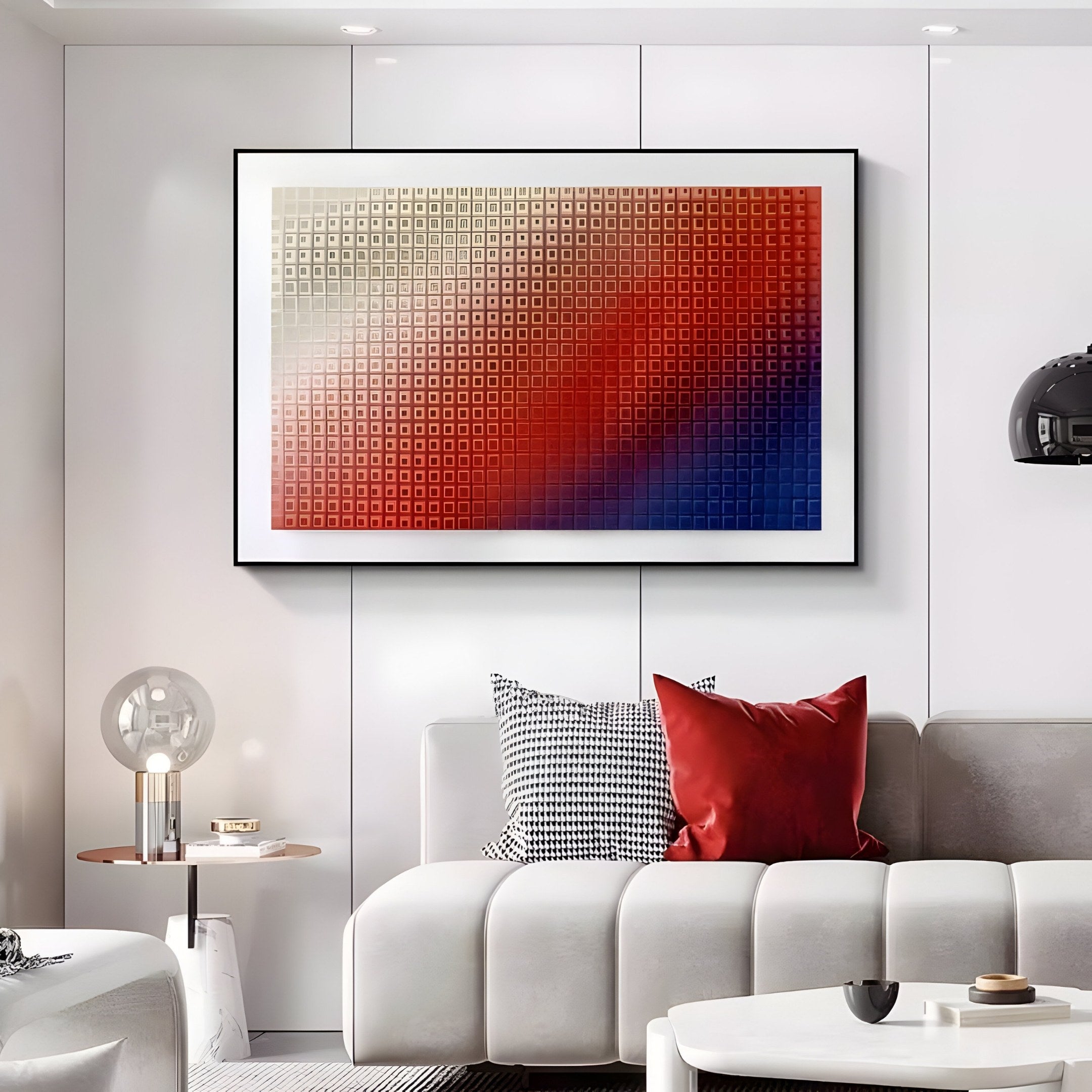 Elytrum Red & Blue Grid Gradient Hand-Painted Wood Relief 3D Wall Art