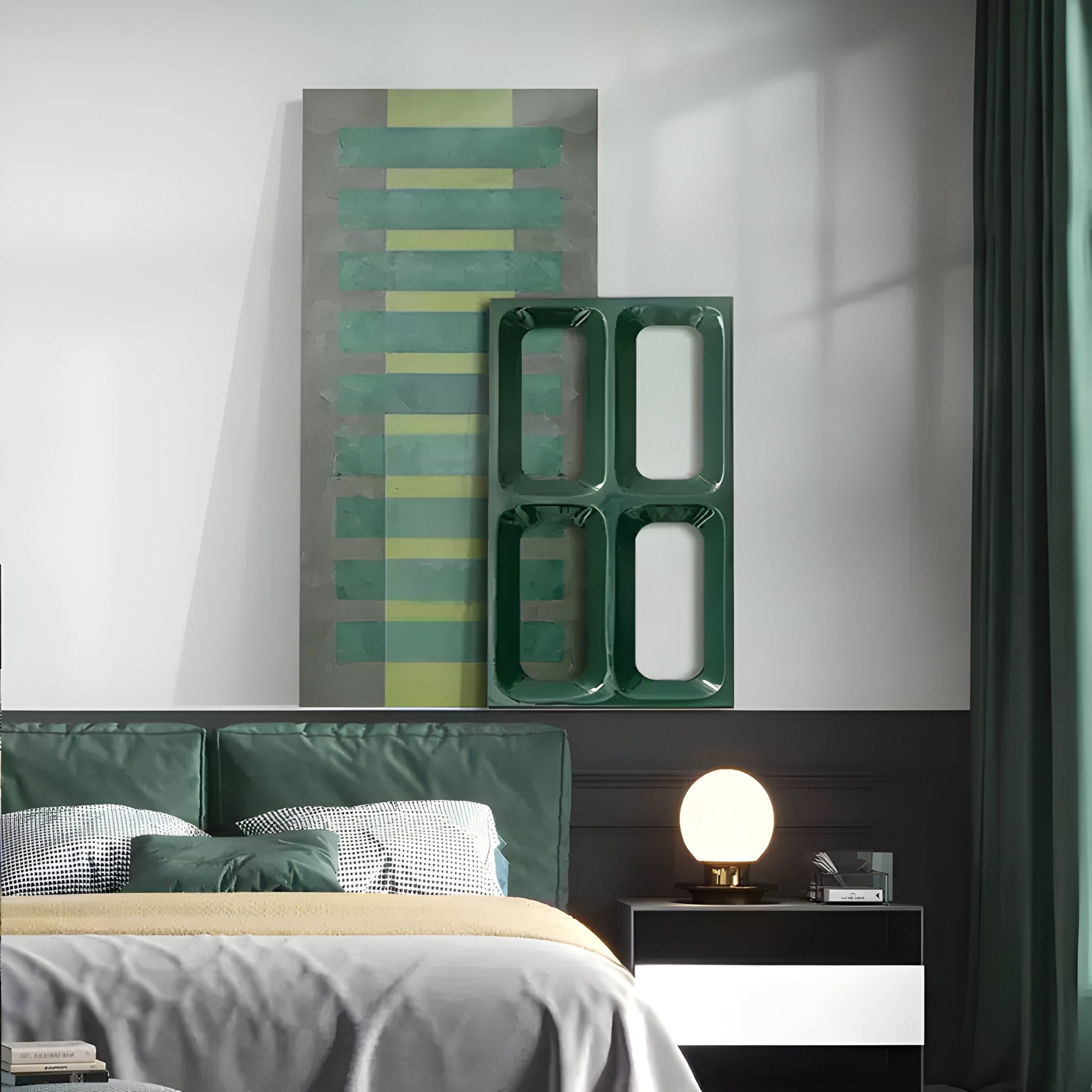 Hand-painted to capture a calm yet modern aesthetic, each stroke in this composition underscores a thoughtful approach to proportion and shade. This approach allows the painting to merge easily with contemporary décor, while also providing a subtle contrast in more eclectic spaces. The interplay of lighter mint strips and deeper emerald brushstrokes introduces a balanced tension, producing visual interest without overwhelming the surrounding décor. Sized to serve as a statement piece, the artwork can be showcased as an independent focal point, or paired with minimalist furnishings to emphasise its crisp lines and sleek vertical format. Durable finishes preserve the vibrancy of the green palette over time, ensuring that the Lineris Green & Mint Layered Abstract Oil Painting consistently offers a serene yet compelling display in any sophisticated interior.