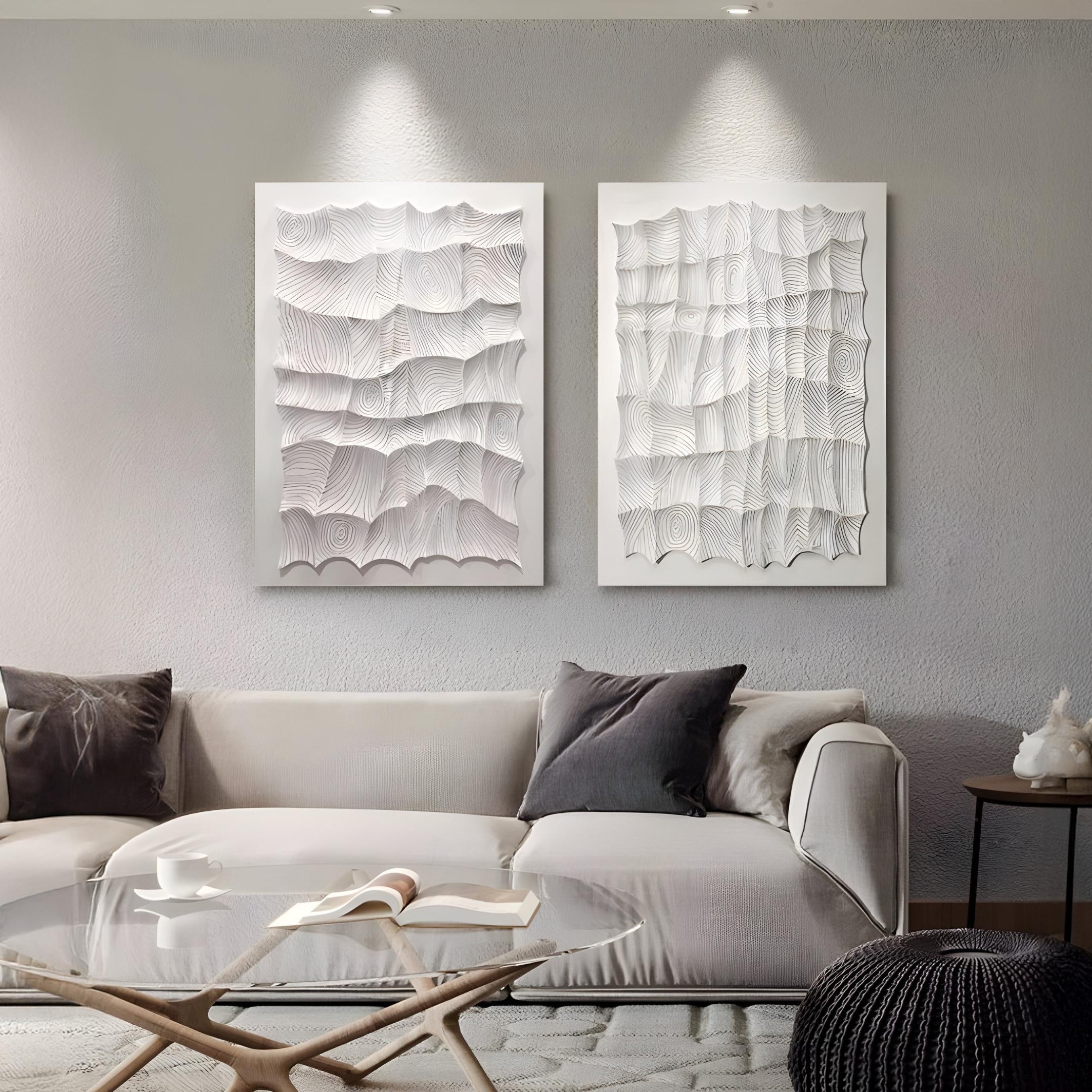 • Novara White I Hand-Painted Wood Relief 3D Wall Art
