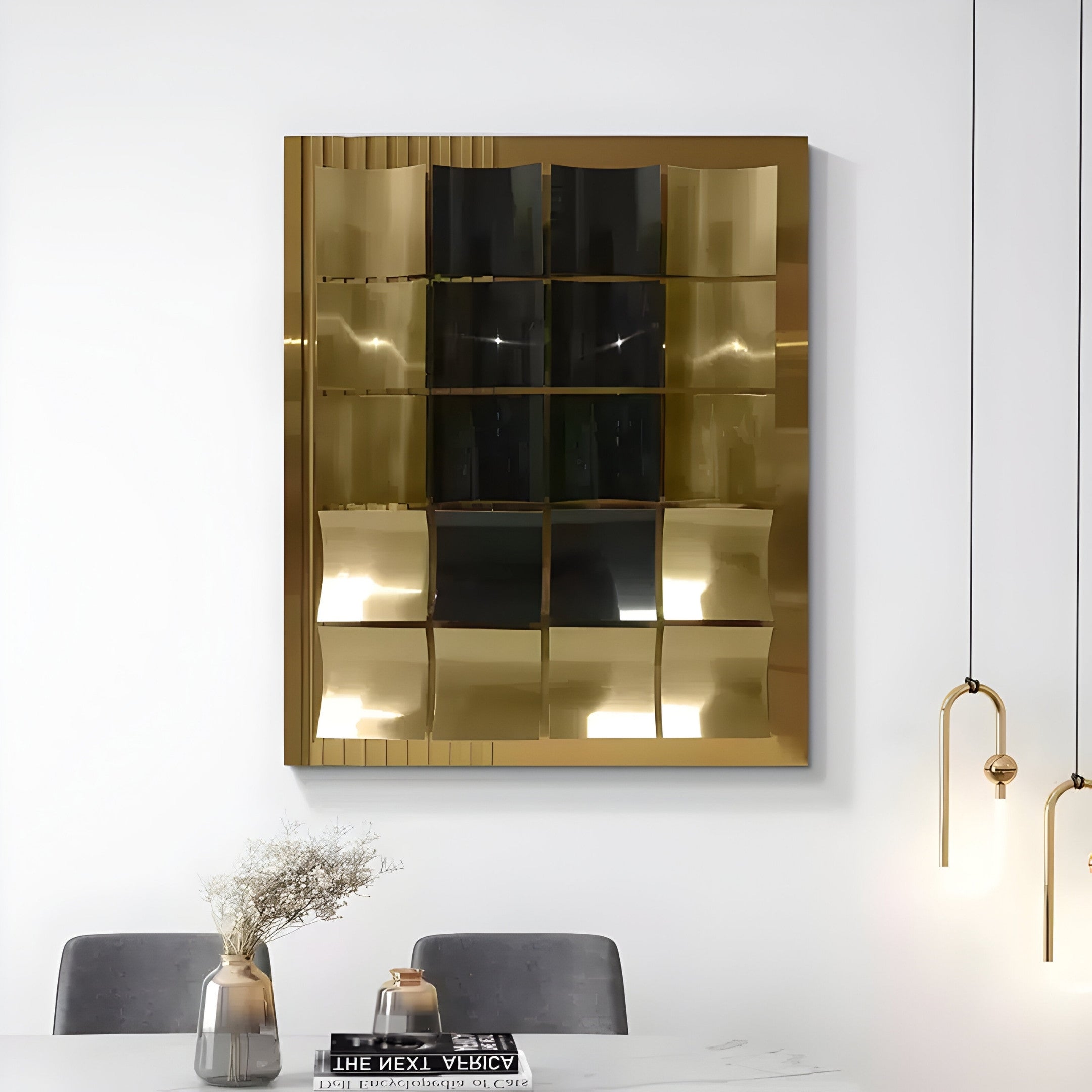 Crafted for the connoisseur of high-end modern art, the Onda Gold Rippled Geometric Metal 3D Wall Art is an exquisite fusion of design and luxury. Its structured arrangement of rippled gold stainless steel panels forms a captivating geometric pattern that interacts beautifully with light, creating a dynamic play of reflections. The 3D effect adds depth and sophistication, making this wall art a statement piece for upscale interiors. Whether displayed in a living room, entryway, or dining area, this artwork seamlessly merges art with functional decor, embodying refined craftsmanship.