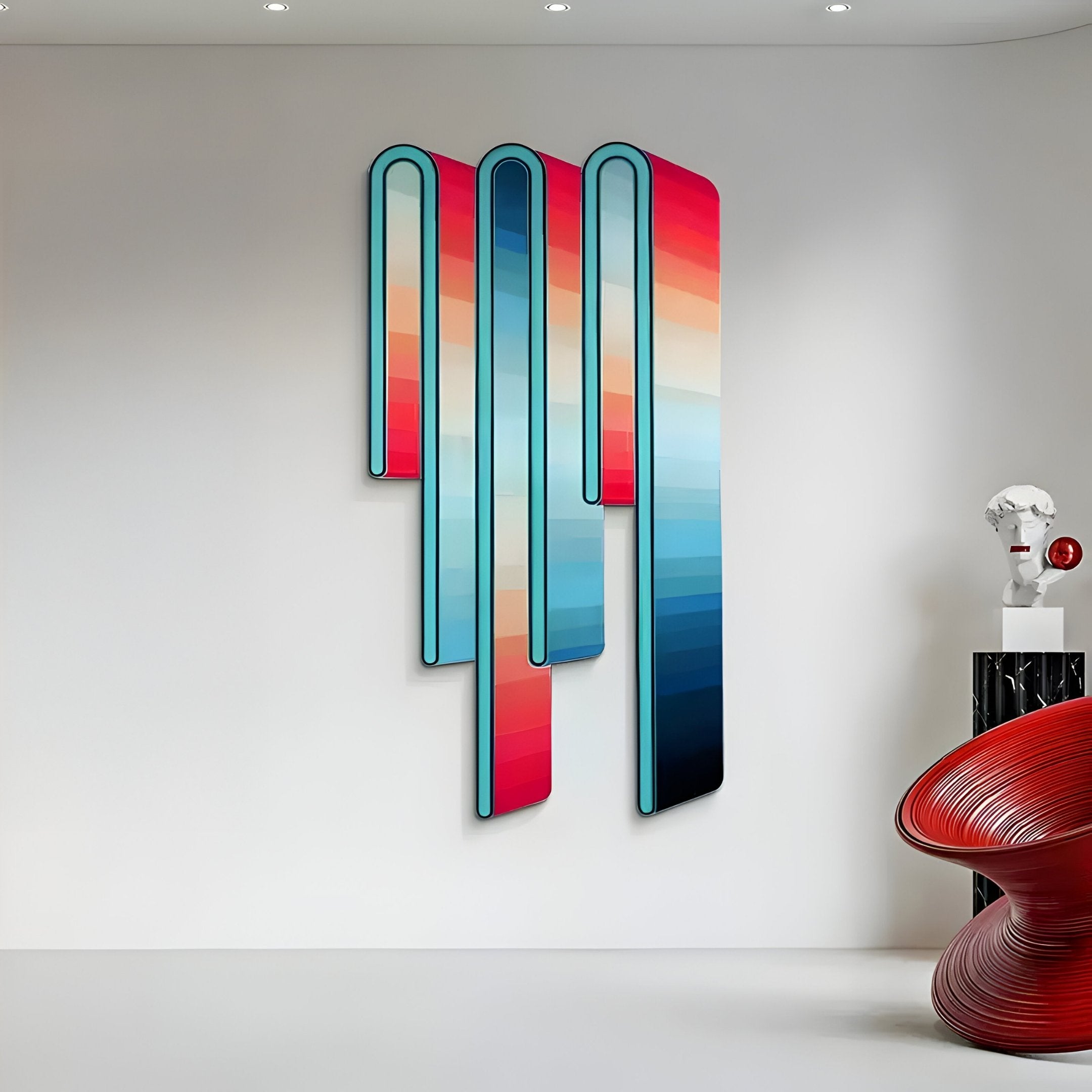 Carved from quality wood and hand-finished to display a rich gradient, the Opaline Coral Teal Gradient Wood Relief 3D Wall Art merges abstract design with detailed craftsmanship. The piece is formed from elongated vertical panels that transition smoothly from warm coral and pink shades at the top through gentle cream tones to cooler teal hues near the base. This flowing spectrum brings a sense of movement and visual harmony, accentuated by the carved edges and softly rounded corners. By catching and reflecting light differently as the day progresses, each panel showcases subtle shifts in its gradient, offering a modern focal point that suits living rooms, hallways, or office interiors seeking a distinctive vertical element.