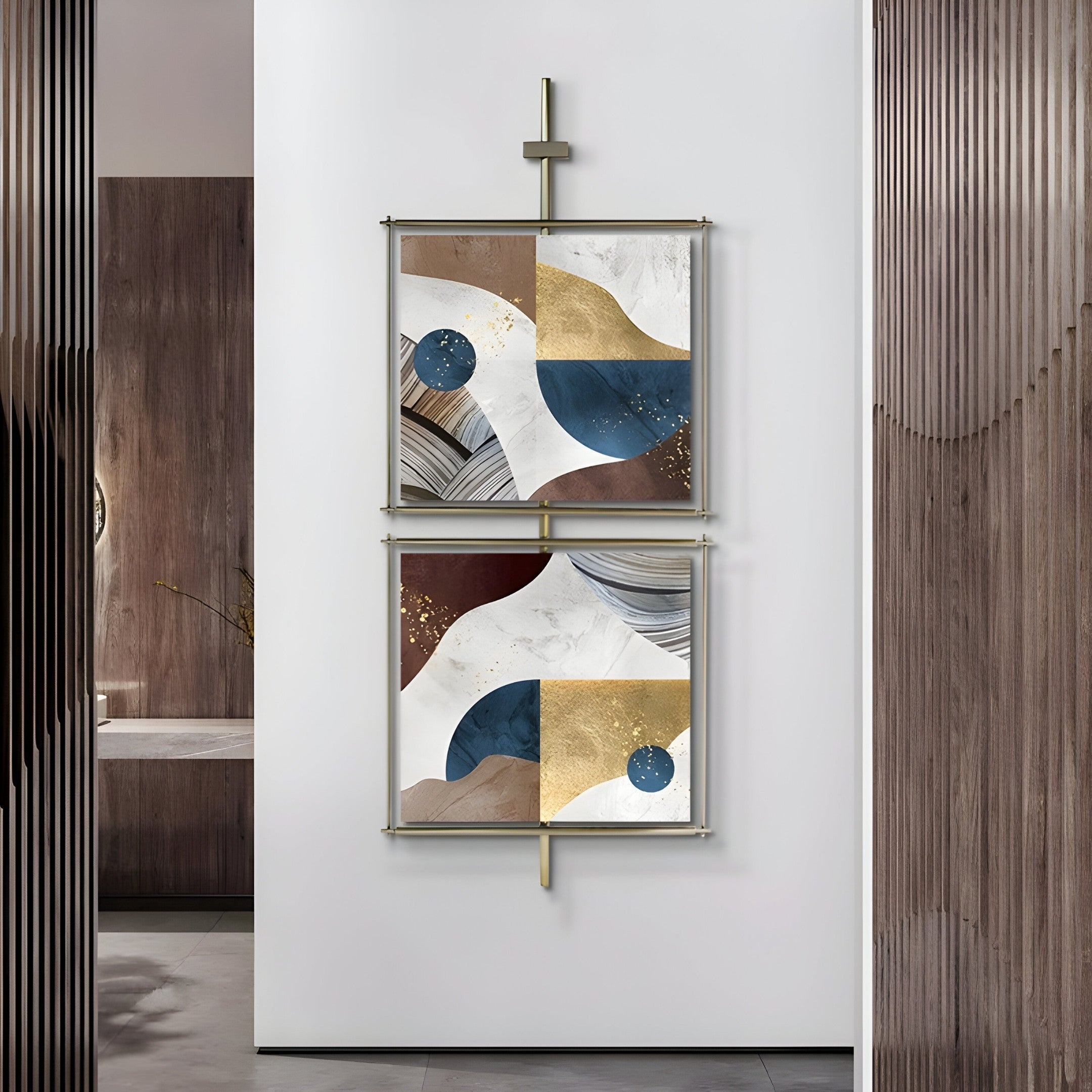 This dual-panel artwork fits seamlessly into a variety of interiors, from professional spaces to cozy home environments. Its balanced color palette pairs effortlessly with minimalist or eclectic interiors, enhancing walls without overpowering the decor. The durable stainless steel frame and premium paint ensure longevity, making it suitable for high-traffic areas like hallways or professional settings. Whether positioned above a sofa, in a gallery-style hallway, or as a statement piece in a studio, the Vortice Wall Art blends artistic sophistication with practical design, elevating any environment.