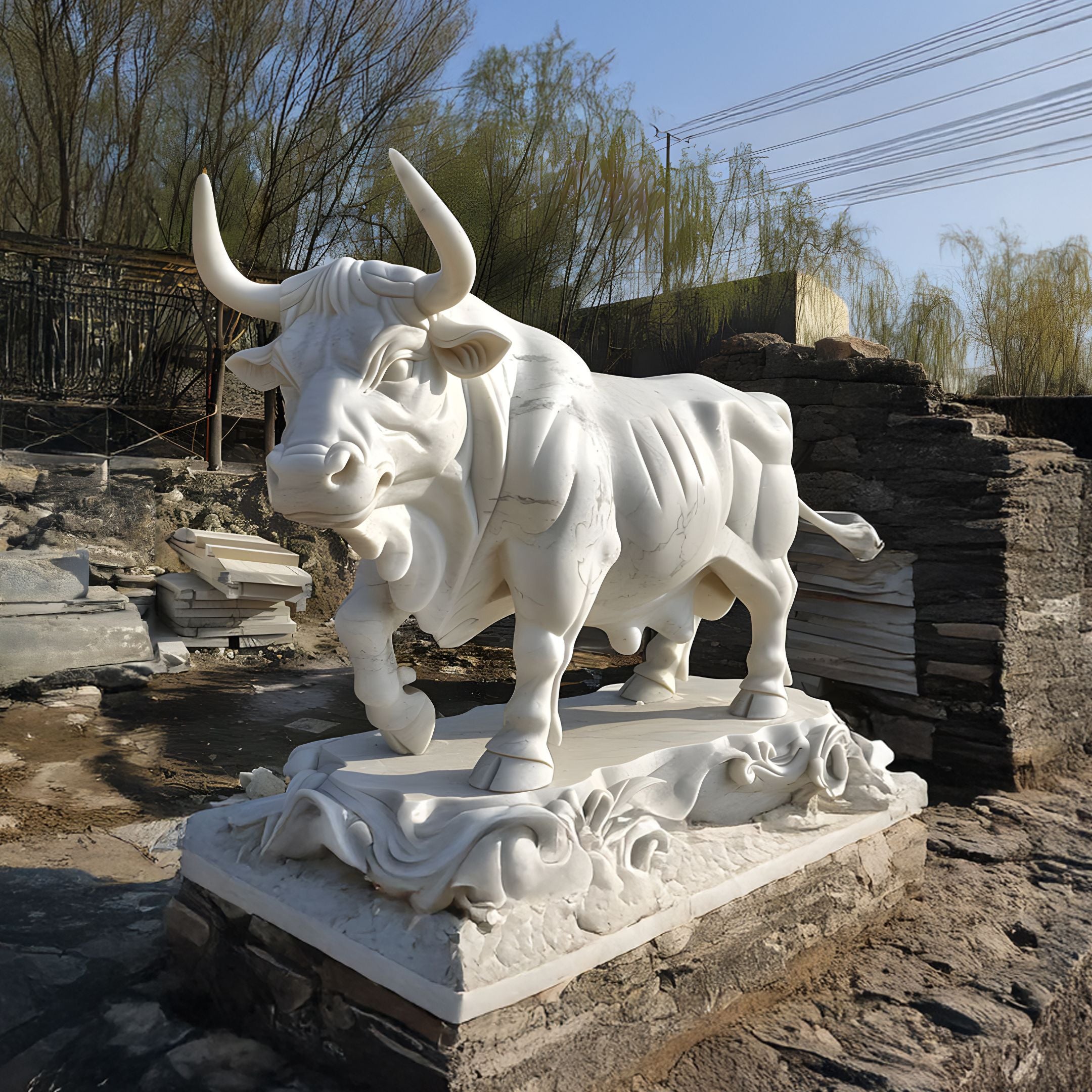 Though robust enough for outdoor use, this bull can also command attention indoors, whether in a hotel lobby, corporate atrium, or private collection. It can anchor a design scheme focused on bold elements, or stand on its own as a testament to raw artistic expression. For those looking to personalise the piece, minor adjustments in size or finish may be available upon request. Backed by the craftsmanship of experienced artisans, the Charging Bull White Marble Outdoor Sculpture reflects both heritage and quality, lending a sense of dynamic energy to any setting. Whether you’re placing it at the entrance of a grand estate or showcasing it in a tranquil garden, its unwavering presence invites admiration and conversation, underscoring the timeless appeal of marble artistry.