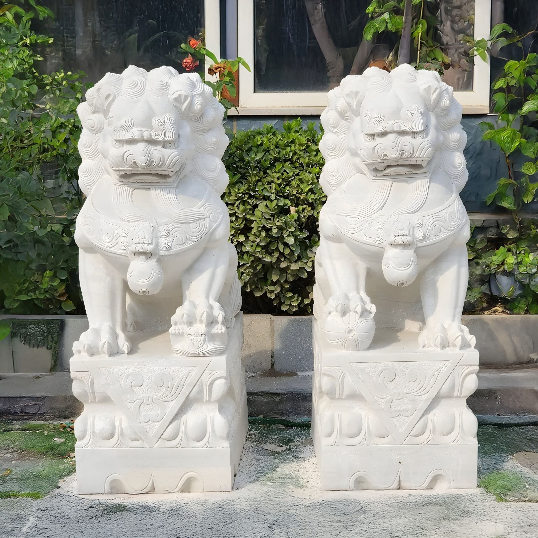 The Chinese Guardian Lion IV Marble Sculpture seamlessly adapts to both indoor and outdoor spaces, offering unmatched versatility and artistic resonance. Whether positioned as a sentinel at the entrance of an elegant residence, placed within a serene garden to complement lush greenery, or featured prominently in a sophisticated commercial setting, this sculpture infuses the environment with cultural significance and a sense of heritage. Fully customizable in size and design, it can be tailored to meet your precise aesthetic preferences and spatial requirements. The durable natural white marble ensures longevity, making it a valuable addition to any curated collection. By blending traditional carving techniques with modern sensibilities, this sculpture stands as a unique testament to enduring artistry and symbolic depth.