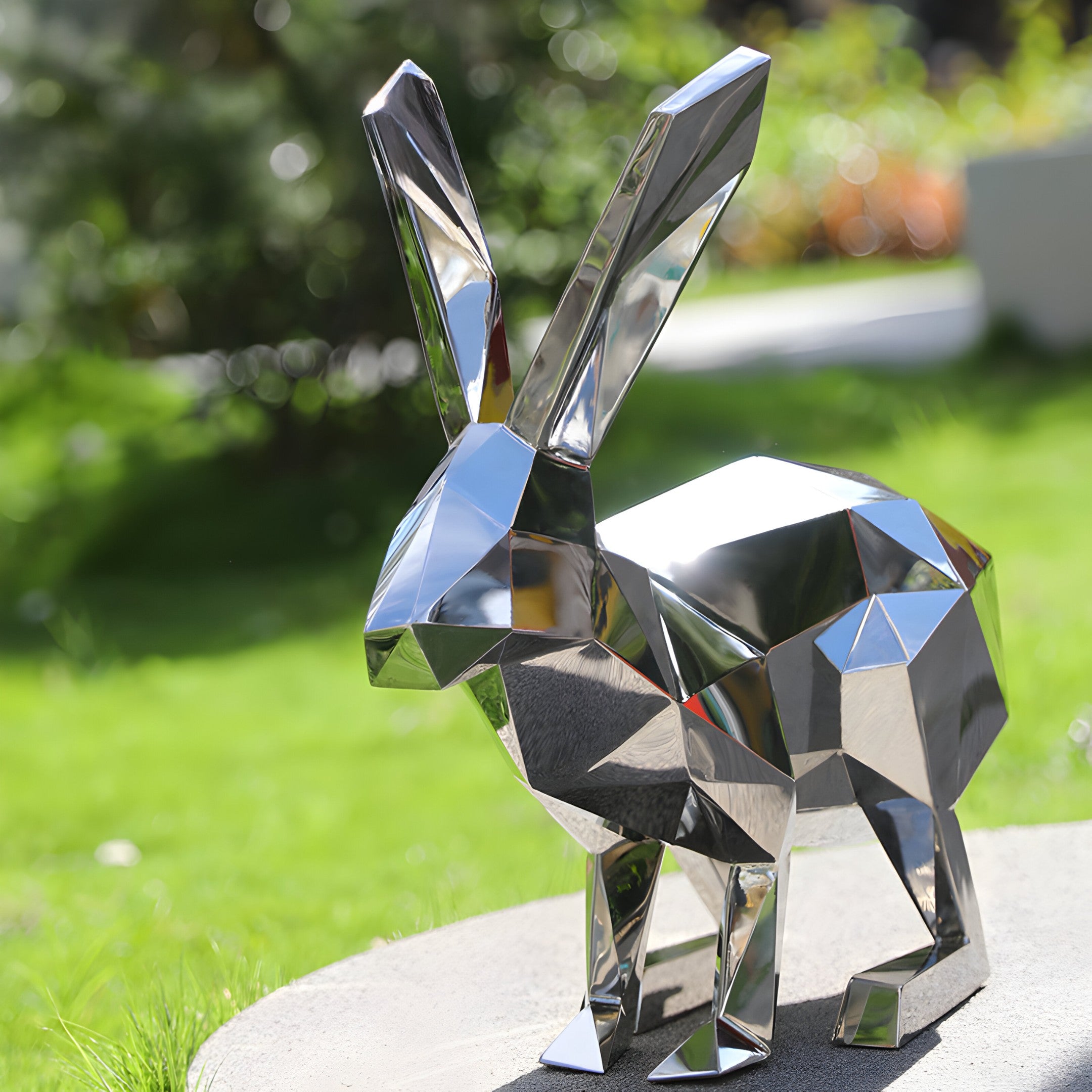 Contemporary Rabbit Sculpture: Minimalist Steel Art for Gardens