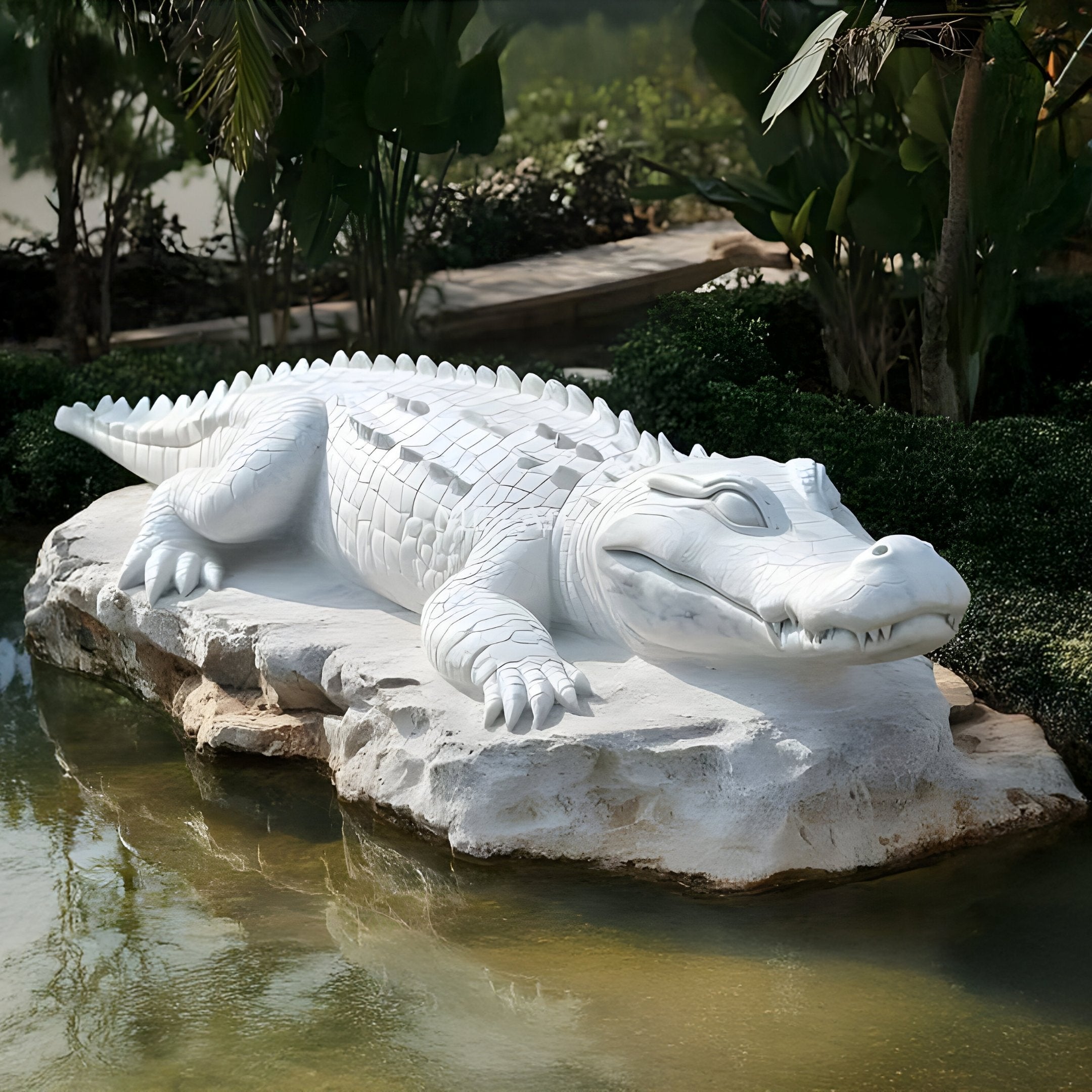 Crocodile I White Marble Sculpture - A Unique Outdoor Feature