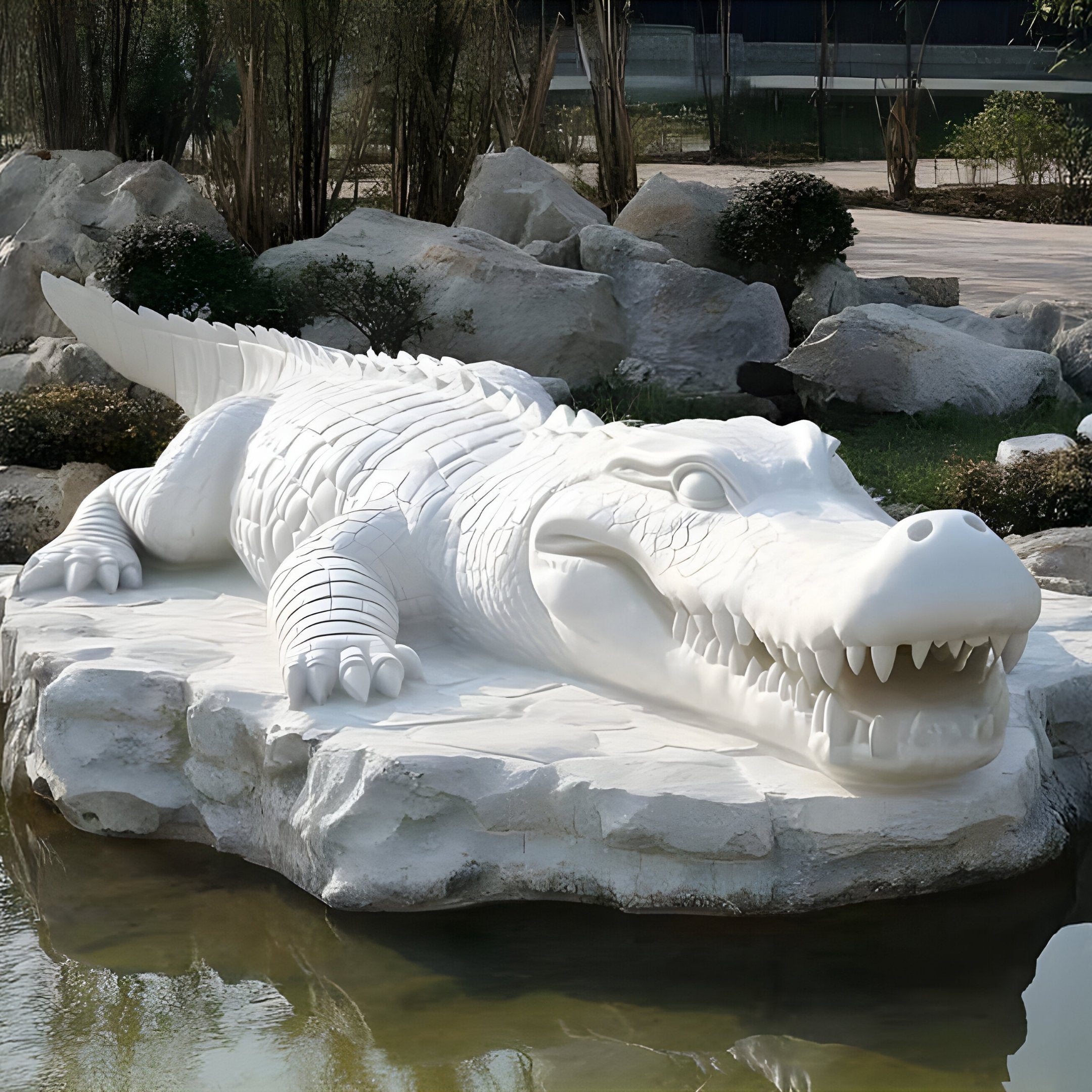 Crocodile White Marble Sculpture – A Statement of Strength