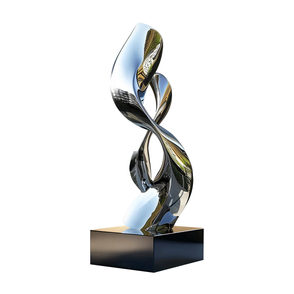 The Custom Modern Abstract Garden Art Outdoor Stainless Steel Sculpture �C Eternal Flow is a mesmerizing fusion of contemporary design and artistic elegance. With its dynamic, fluid form, modern sculpture symbolizes the infinite movement of energy and the harmony between nature and modernity. The polished mirror finish enhances its reflective quality, allowing it to seamlessly integrate into its surroundings and interact with light, space, and perspective.