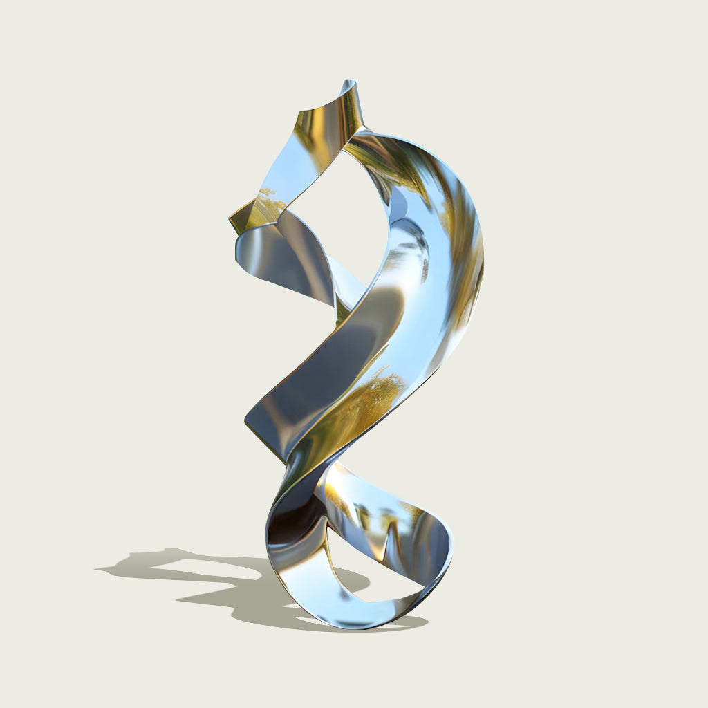 - Polished Mirror Finish: The reflective surface enhances the stainless steel sculpture’s modern appeal, reflecting the sky, surroundings, and light in a mesmerizing way.