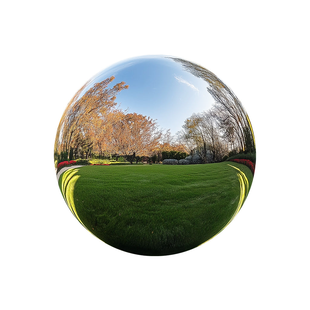 The highly reflective surface enhances the natural beauty of its surroundings, capturing light, colors, and movement, adding depth and dimension to any landscape. Whether installed in a garden, public park, or luxury setting, this stainless steel sphere sculpture offers a unique, futuristic aesthetic while maintaining a timeless artistic appeal.