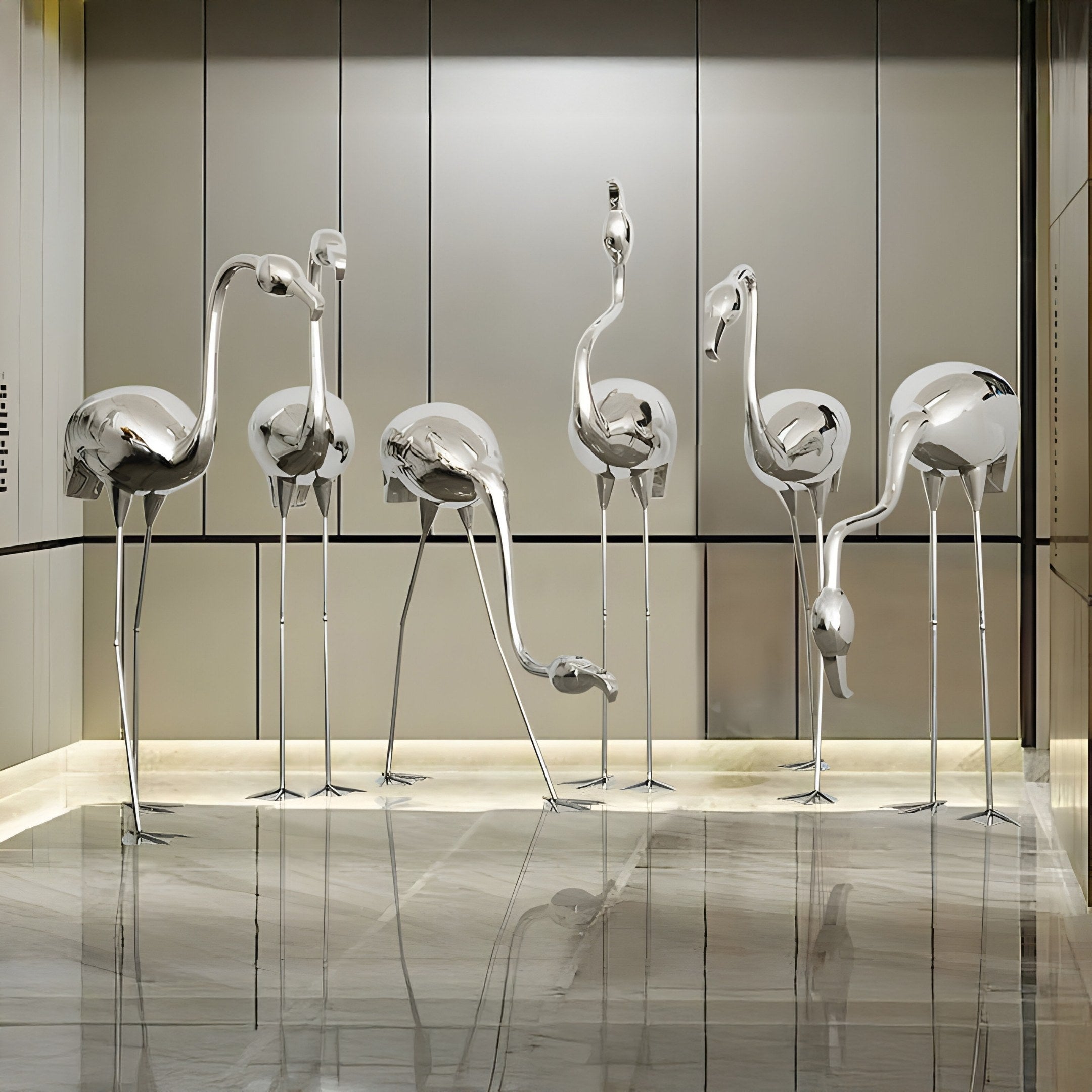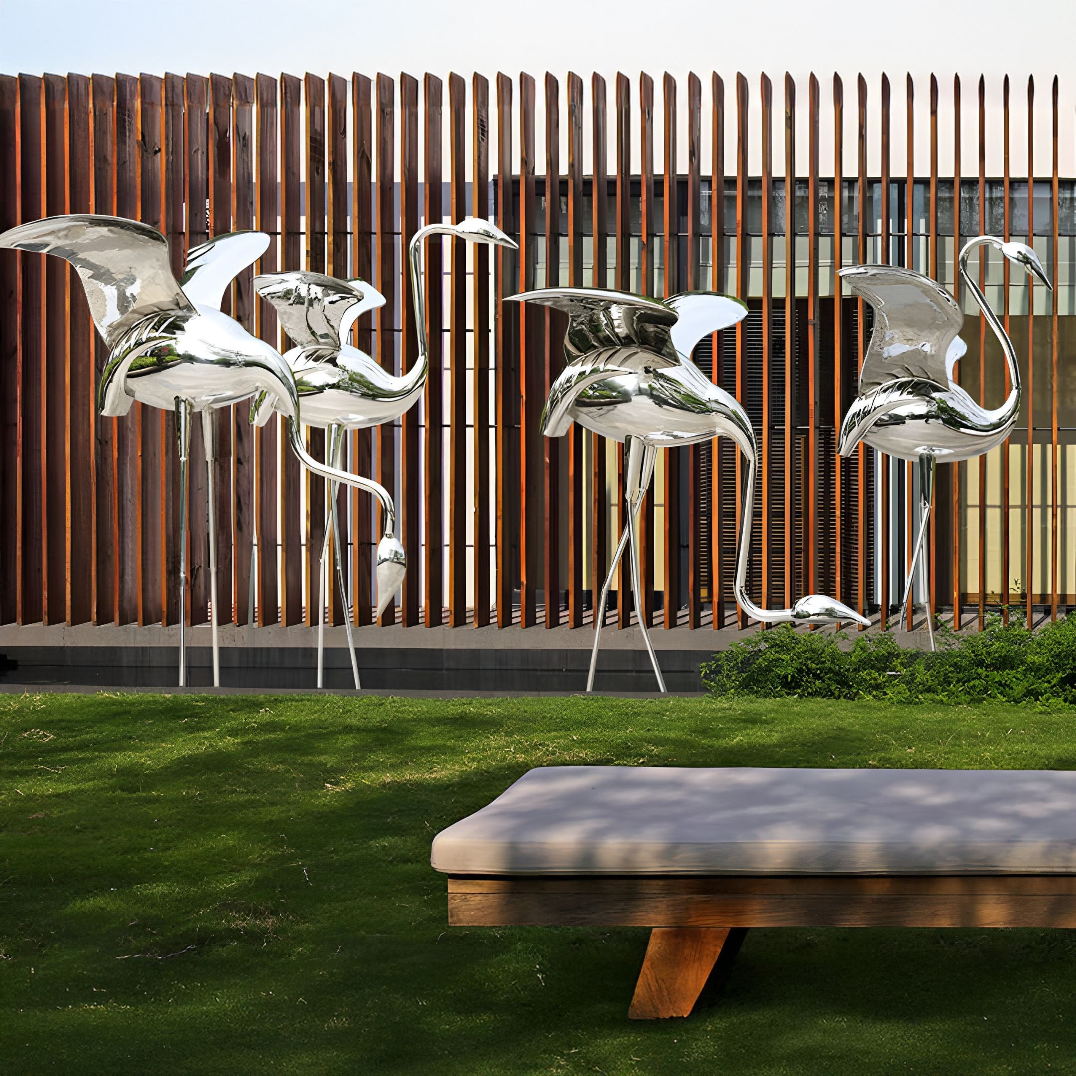 Designed to complement a variety of outdoor environments, the Flamingo Stainless Steel Sculpture offers both durability and aesthetic charm. Its weather-resistant construction ensures longevity, making it ideal for gardens, patios, courtyards, or landscaped areas. Each of the six versions presents the flamingo in a different pose, allowing you to choose the one that best fits your space and personal style. Whether standing gracefully on one leg, mid-flight, or in a serene resting position, this sculpture enhances the natural beauty of your surroundings with its sleek design and reflective qualities. Perfect for art enthusiasts and those seeking to elevate their outdoor décor, the Flamingo Stainless Steel Sculpture brings timeless elegance and artistic flair to any setting.