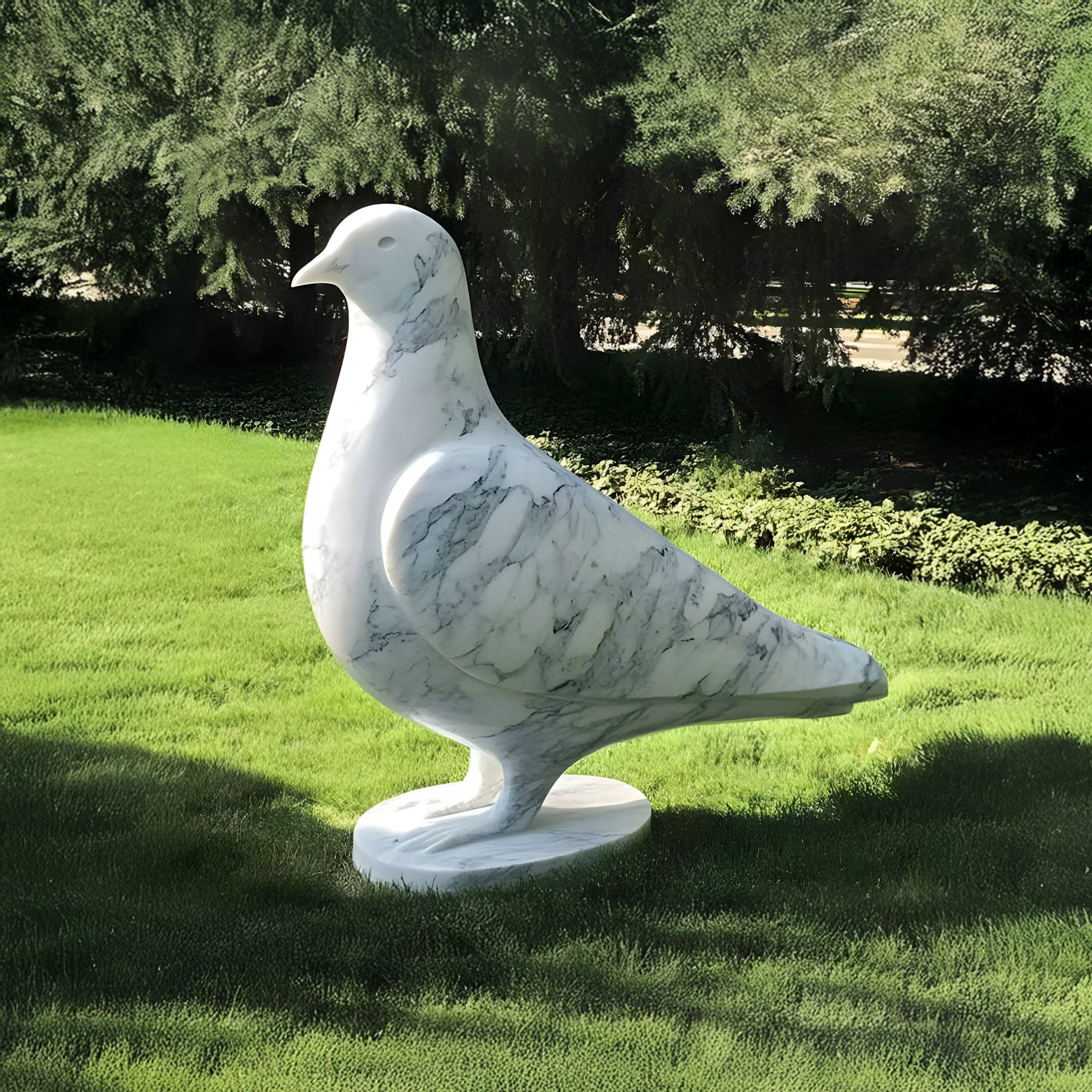Perfectly suited for both outdoor and indoor environments, this sculpture enhances its surroundings with a sense of calm and harmony. In gardens or courtyards, it blends seamlessly with natural landscapes, serving as a focal point amidst greenery. Indoors, it complements minimalist and traditional decor styles alike, adding a touch of elegance to tabletops, shelves, or mantels. The robust marble construction ensures longevity, making it suitable for outdoor use while maintaining its polished appearance. Customisation options allow you to adapt the sculpture’s size or design to suit your preferences, ensuring a unique piece that reflects your personal style. The Graceful Dove Sculpture is more than a decorative item; it’s a symbol of peace and a testament to fine artistry. Whether displayed as part of a garden retreat or as a centrepiece in your home, this marble sculpture brings timeless beauty to its surroundings.