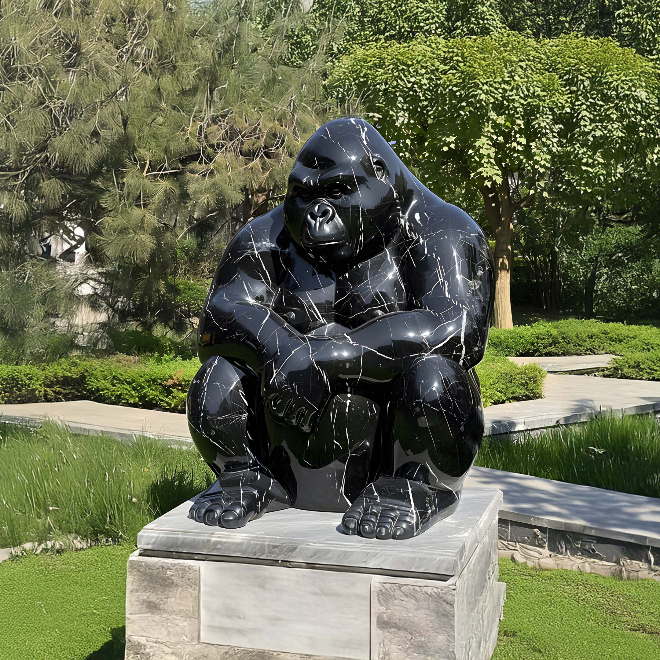 The Midnight Seated Gorilla Marble Outdoor Sculpture measures 60cm, carved from black Dali marble with striking white veining. Portrayed in a thoughtful seated position, this gorilla captures both the raw power and quiet introspection of one of nature’s most iconic primates. Each subtle detail, from the pronounced brow ridge to the defined musculature, reflects the dedication of skilled artisans, while the natural veining in the marble imparts unique depth to every piece. Polished surfaces gently catch and reflect light, enhancing the sculpture’s compelling presence in gardens, patios, or modern interior foyers. A stable base ensures that the gorilla remains secure in varying weather conditions, preserving its refined appearance over time. Whether placed among vibrant greenery or showcased in a minimalist environment, this piece exudes a calm strength that invites curiosity and sparks conversation.