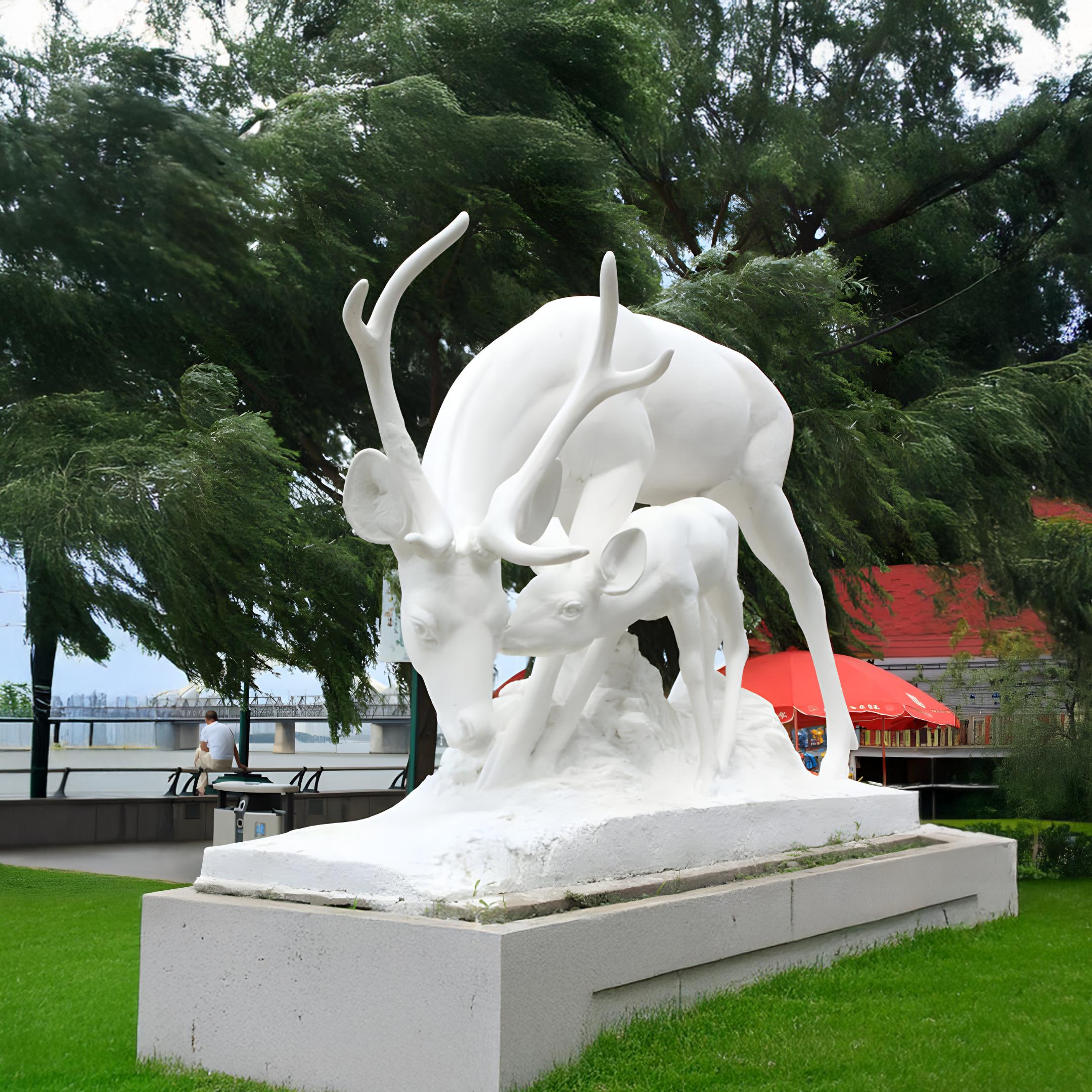 The Nurturing Deer Marble Outdoor Sculpture stands at 160cm, carved from high-quality white marble to depict a mother deer gently guiding her fawn. The lifelike anatomy, from the deer’s slender legs to the delicate shape of the fawn’s features, showcases the expertise of master artisans. The natural veining in the marble adds subtle depth, ensuring each sculpture has its own distinctive character. Polished surfaces softly capture and reflect light, enhancing the sculpture’s tranquil aura in gardens, courtyards, or natural retreats. A sturdy base supports both deer, allowing the piece to remain stable in changing outdoor conditions while preserving its refined appearance over time. Whether surrounded by vibrant flowerbeds or placed in a more minimalist layout, this tender scene exudes a sense of calm reflection and familial devotion.