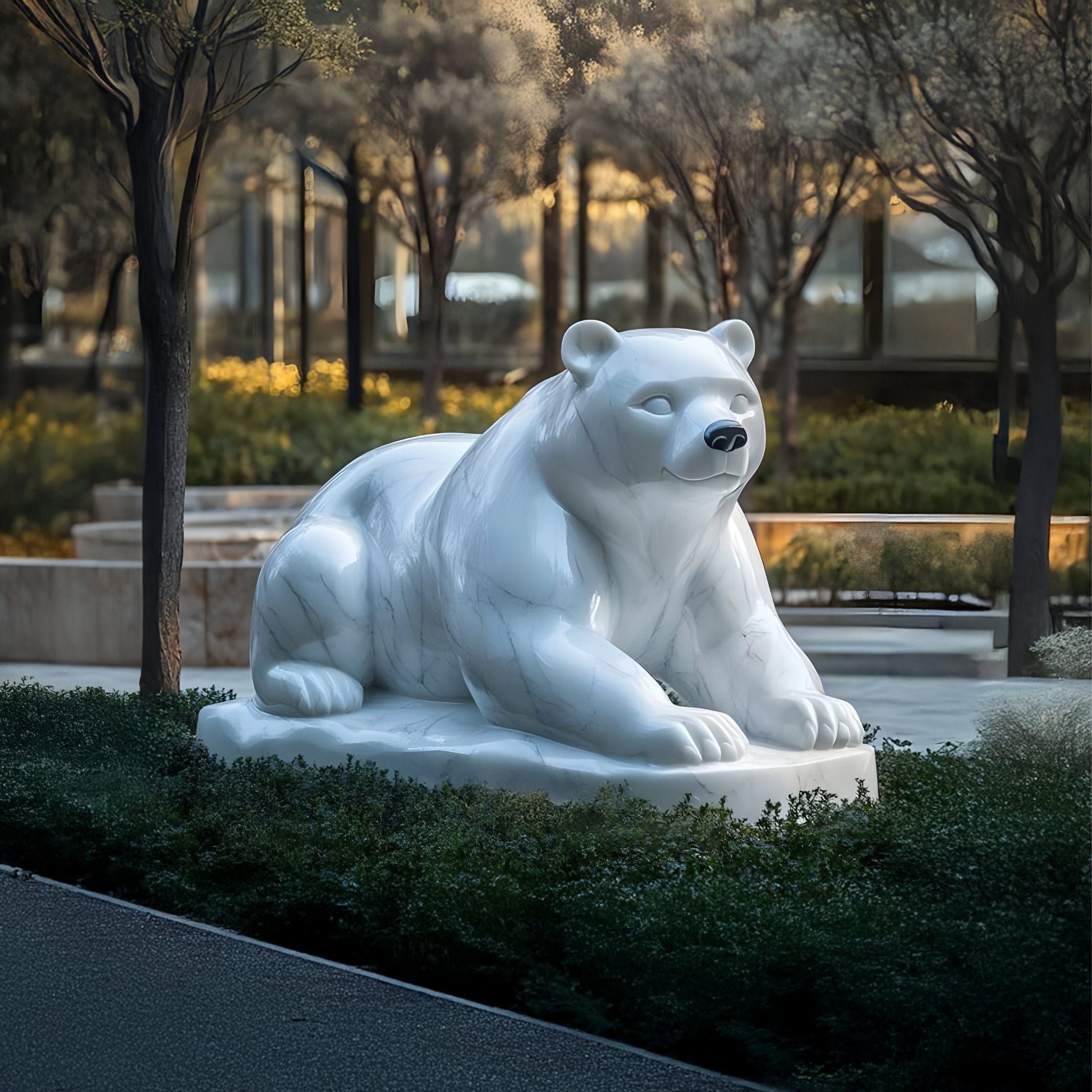 Although originally conceived for outdoor display, this polar bear sculpture can also grace spacious lobbies, galleries, or covered terraces. Its 65cm dimensions allow it to command attention without overwhelming existing décor. If you’re seeking personal touches, there may be customisation options for finish or subtle design elements. By selecting the Resting Polar Bear White Marble Outdoor Sculpture, you invite an essence of polar beauty into your everyday environment. The statue’s peaceful demeanour and carefully carved lines bridge the gap between contemporary styling and classic craftsmanship. Whether you place it near a pond, in a refined entryway, or as a conversation piece in a work environment, this marble artwork serves as a lasting testament to nature’s silent grandeur, seamlessly woven into modern living.