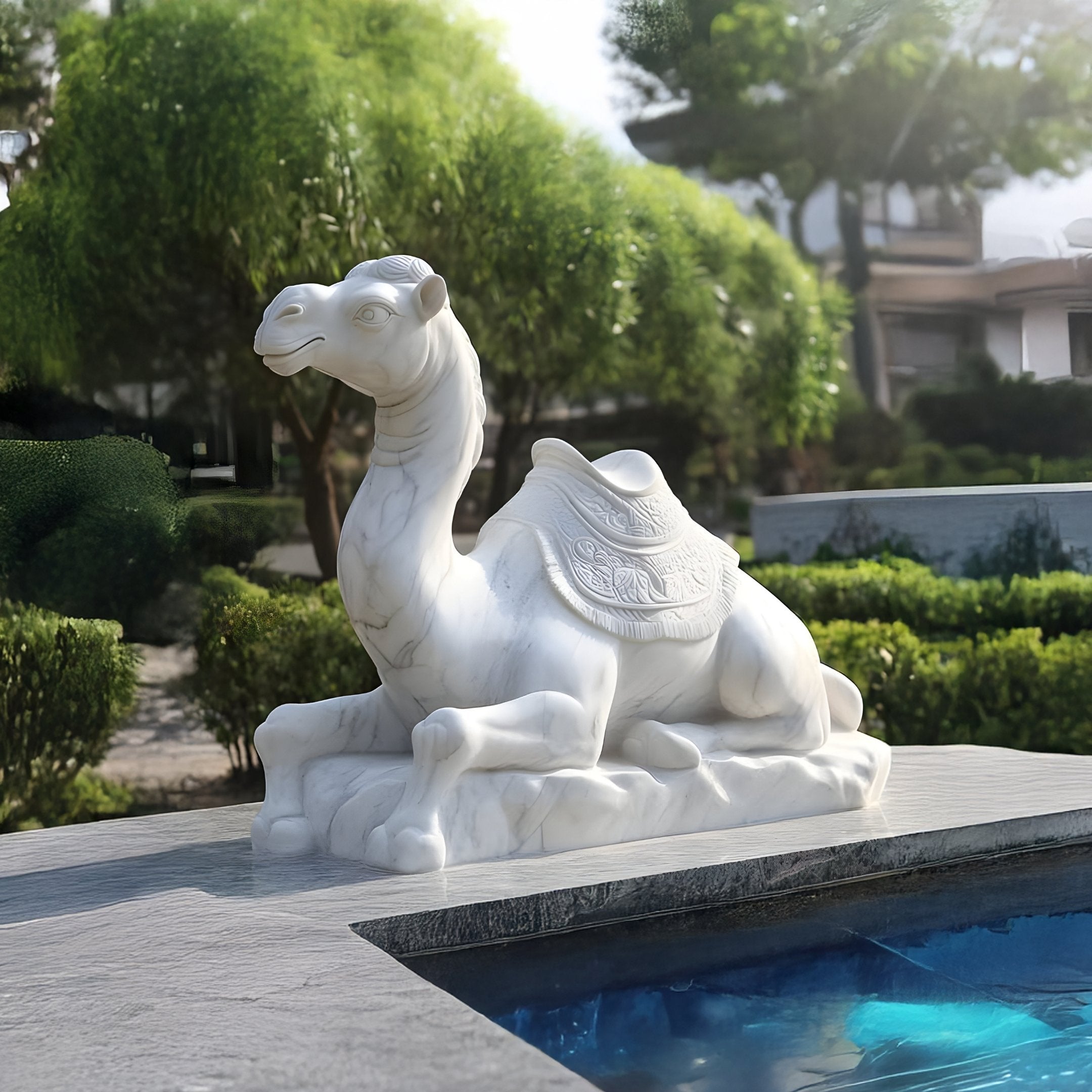 Crafted to complement both traditional and modern outdoor settings, the Saddled Lying Camel can be customised through slight size modifications or alternate finishes, aligning it with individual preferences. The hand-carved detailing, from the decorative saddle to the gentle shaping of the camel’s face, underscores a commitment to artistry and precision. Minimal upkeep preserves the marble’s lustre, ensuring it remains a lasting focal point that resonates on both aesthetic and symbolic levels. Ideal for those seeking a sculpture that bridges refined design with the subtle romance of desert horizons, it invites reflection on journeys past and future. Over time, its presence continues to inspire a sense of calm exploration, reminding viewers of the enduring spirit and patient strength found in one of nature’s most iconic travel companions.