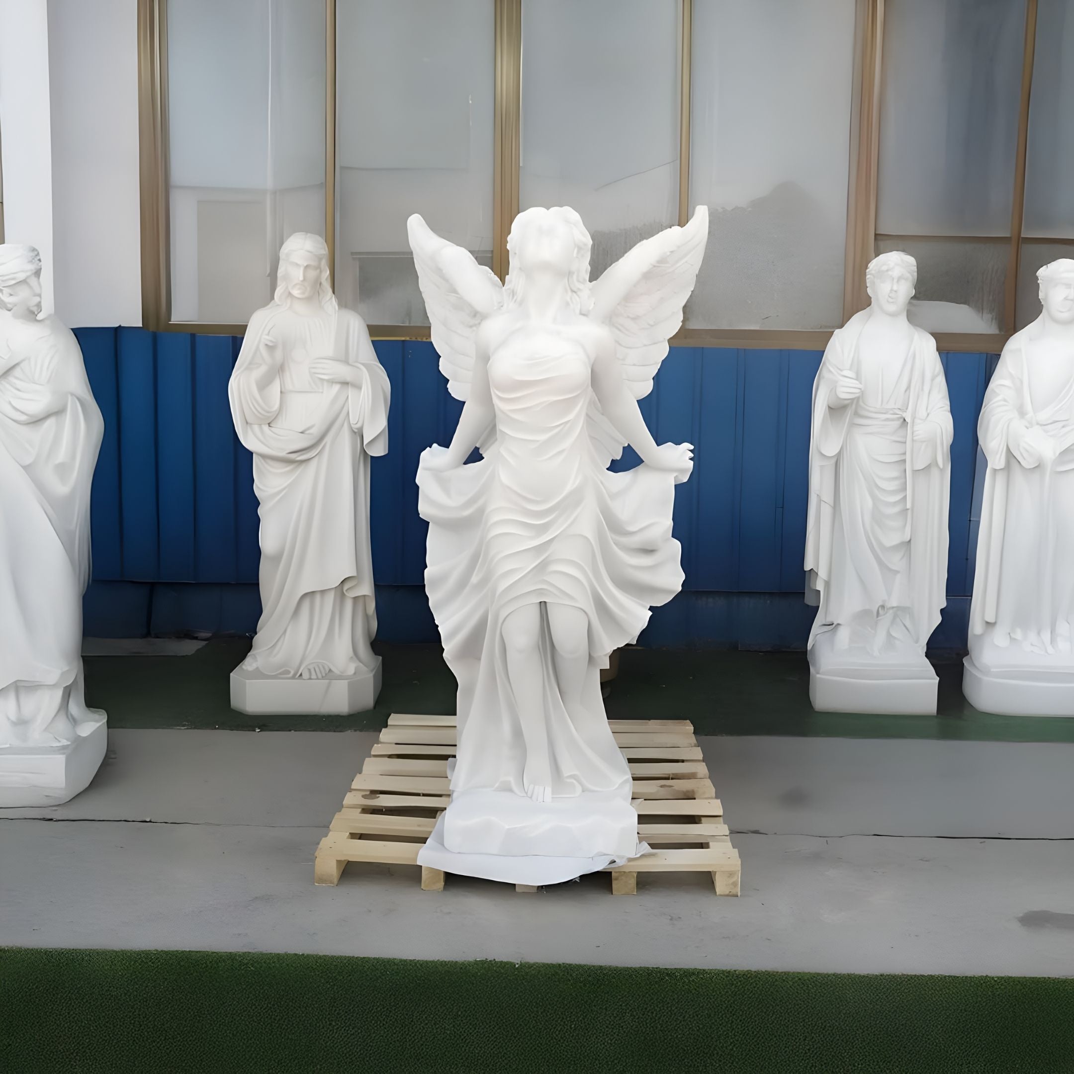 Designed for both traditional and contemporary landscapes, this sculpture complements various architectural styles. Its polished marble surface interacts with natural light, highlighting the delicate folds of the angel’s robes and the intricate feather patterns on her wings. Customisation options, such as slight variations in size or finish, allow for a personal touch that aligns with your outdoor aesthetic. The hand-carved craftsmanship ensures that every detail, from the angel’s serene expression to the gentle curves of her gown, is rendered with care. Ideal for memorial gardens, spiritual retreats, or as a serene statement piece in any outdoor setting, the Skyward Gaze Angel embodies tranquillity, hope, and artistic elegance.