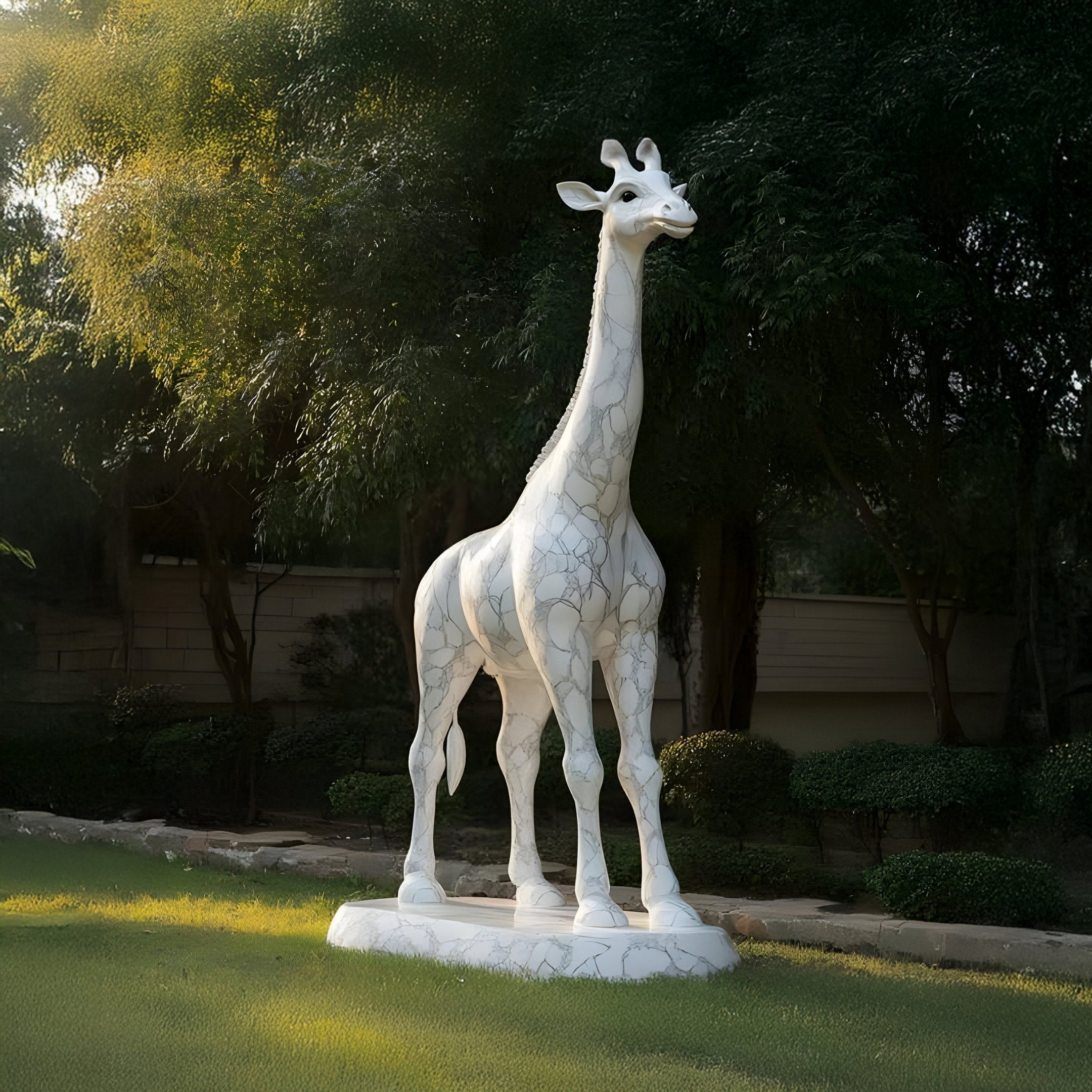 Skyward Grace Giraffe White Marble Sculpture - A Statement of Elegance