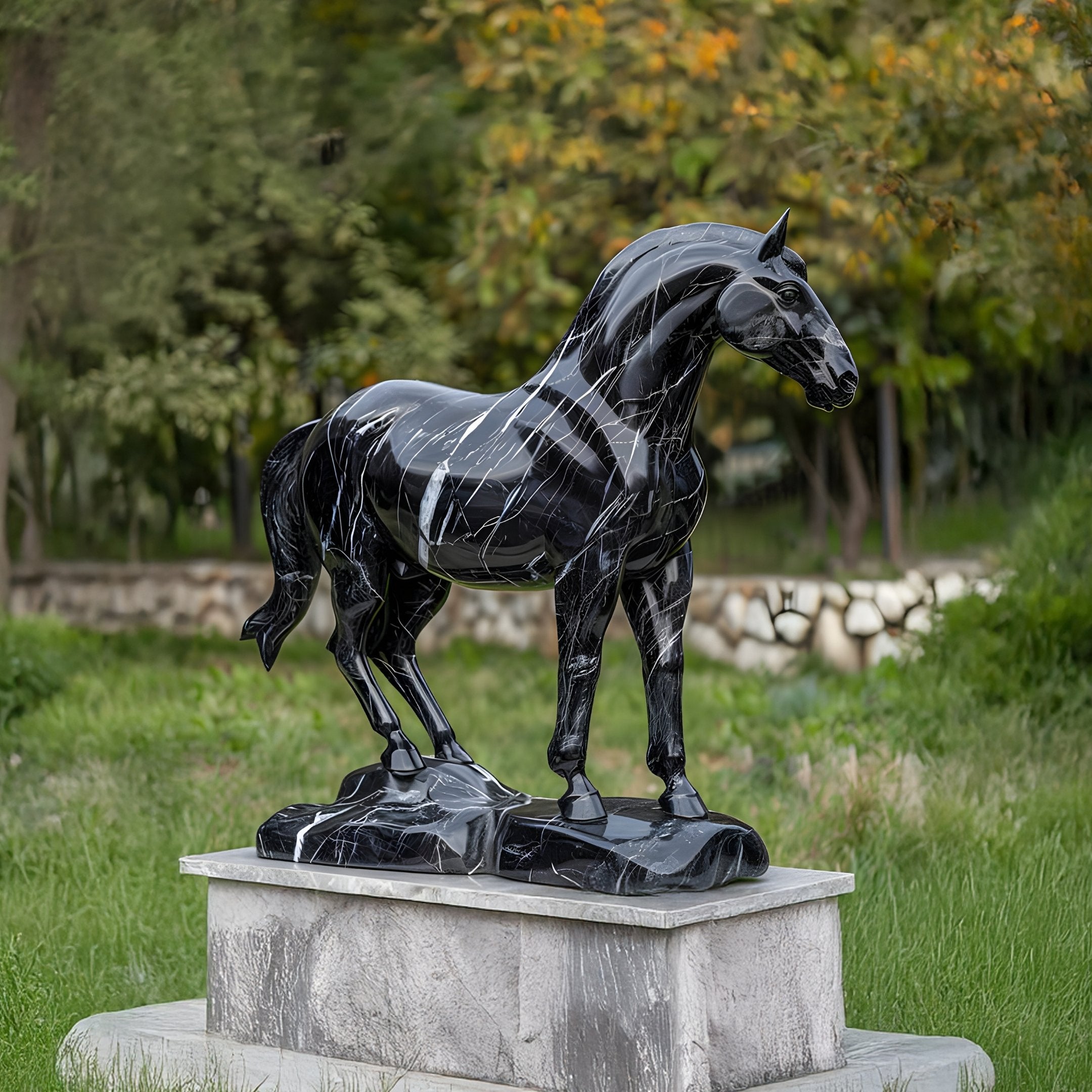This sculpture is designed to stand up to outdoor elements, retaining its smooth surface and rich colour through varying seasons. Though durable enough for gardens, courtyards, or terraces, it can also be positioned in spacious indoor settings, from grand foyers to gallery halls, where its bold silhouette draws instant notice. For those seeking a more personalised look, customisation options let you adjust details or finishes, ensuring the statue aligns with your individual style. The horse’s steady stance evokes reliability and grace, making it an ideal centrepiece that merges form and function. Whether you’re elevating a private residence or adding character to a commercial landscape, the Standing Horse Black Marble Outdoor Sculpture offers a timeless statement piece suited to classic and modern tastes alike.