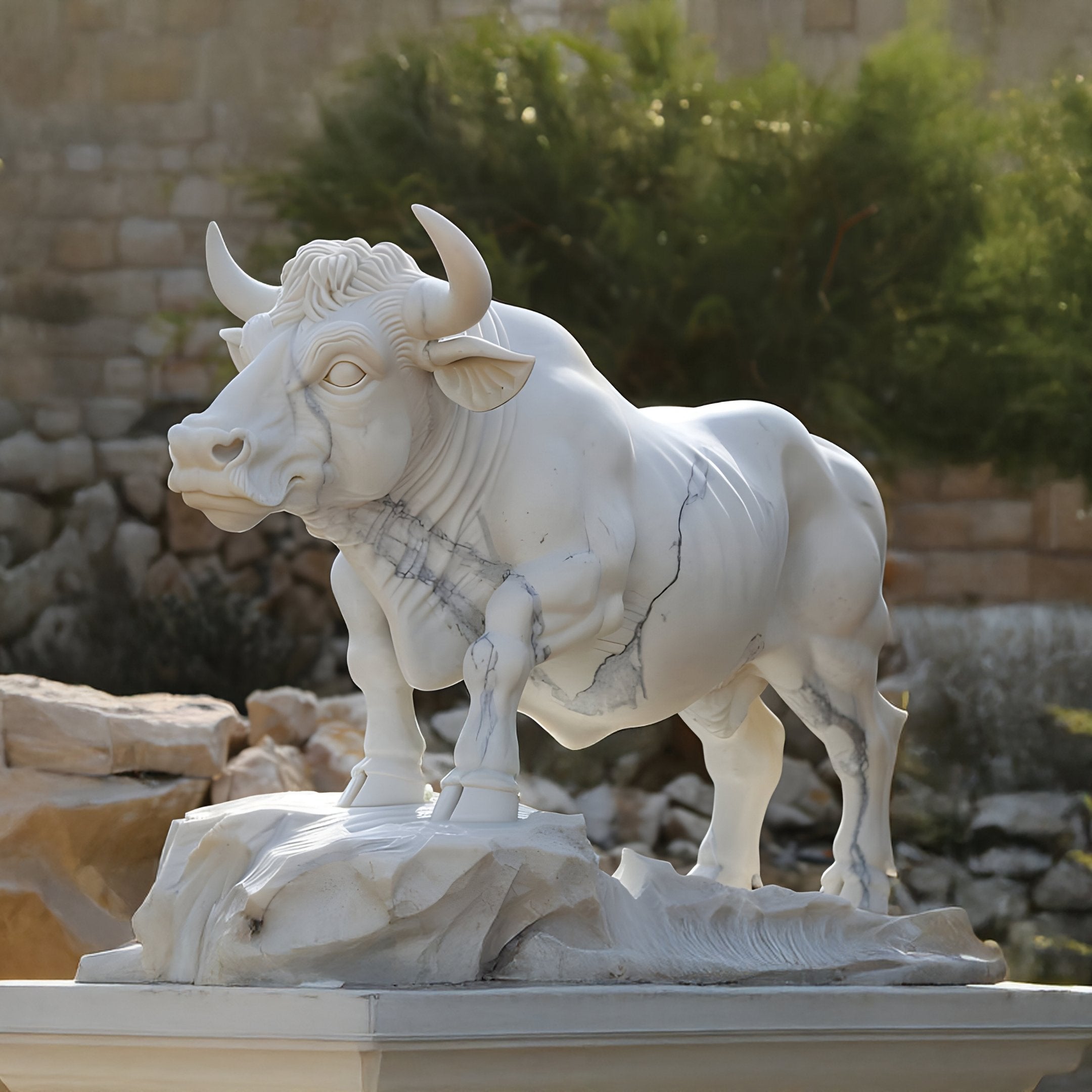 Though intended for the outdoors, this statue can also make a thoughtful statement piece inside a hotel lobby, spacious hallway, or modern office space. It stands out without overwhelming your existing décor, measuring just enough to catch the eye while leaving room for other design elements. If you have specific requests, minor customisation options may be available, allowing you to align the finish or finer details to your personal taste. By selecting the Stoic Bull White Marble Outdoor Sculpture, you bring home a blend of art and durability that suits both contemporary and traditional aesthetics. Whether you’re cultivating a sense of calm resilience in your private garden or seeking a focal point for a business reception area, this marble bull statue offers a subtle nod to strength and stability.