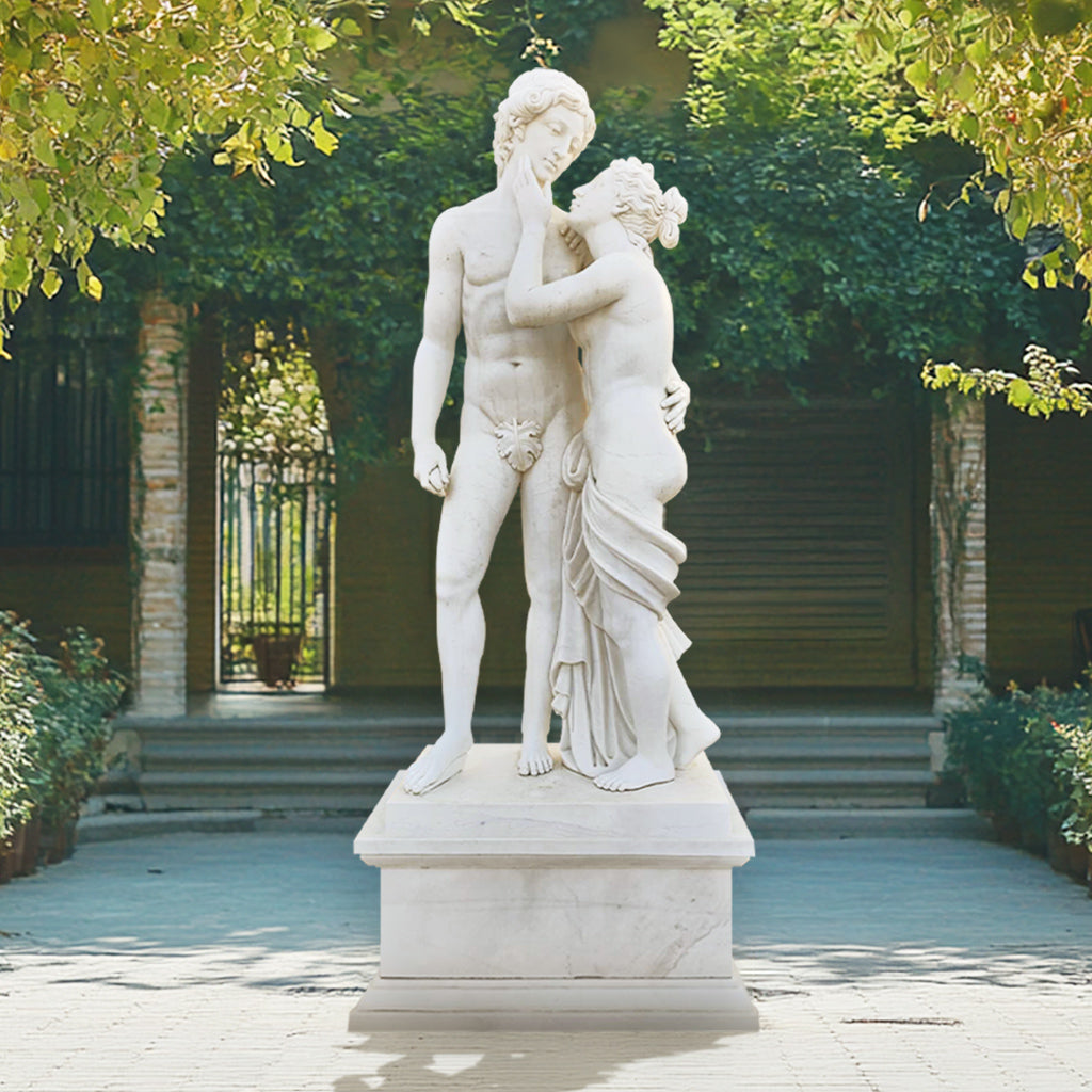 PEGASUS Custom White Marble Adam and Eve Indoor/Outdoor Sculpture with Pedestal FM-064