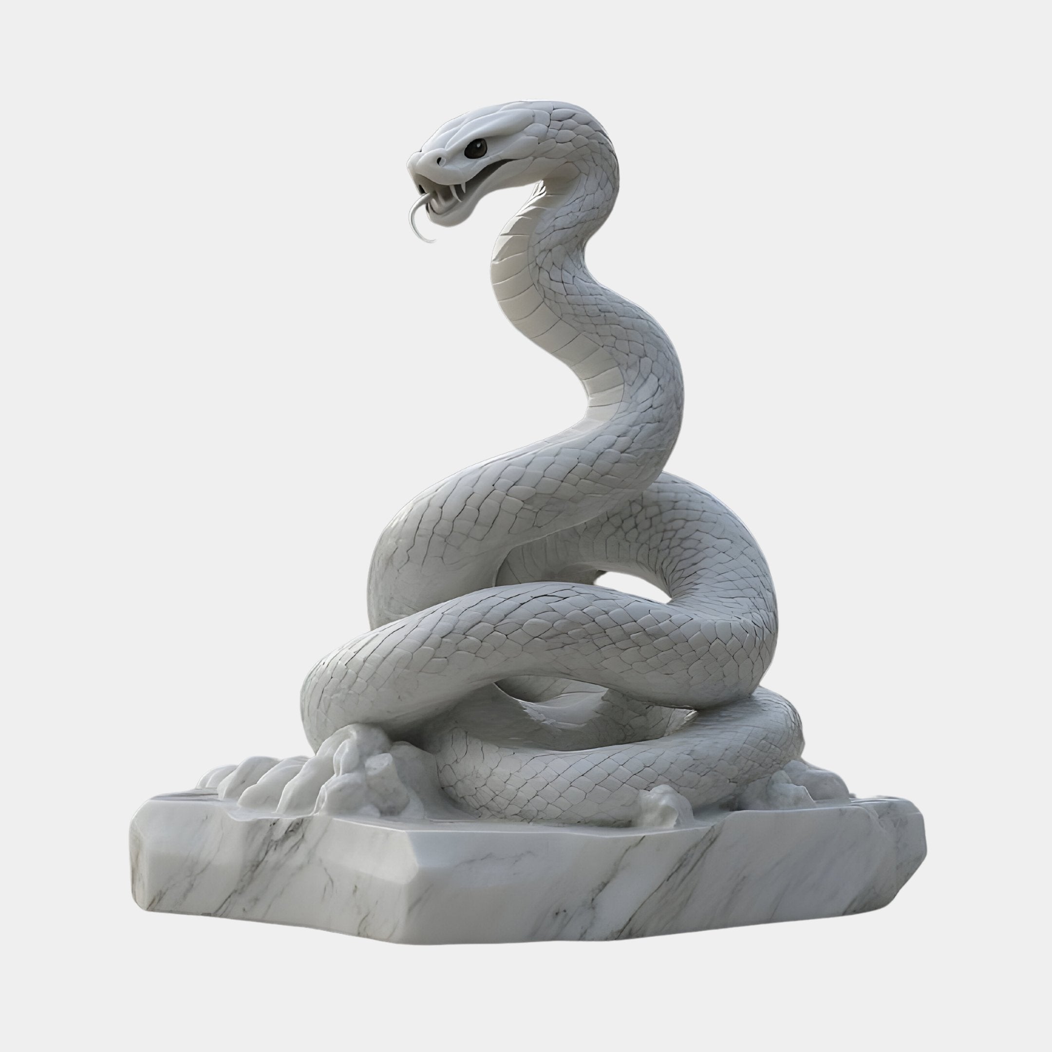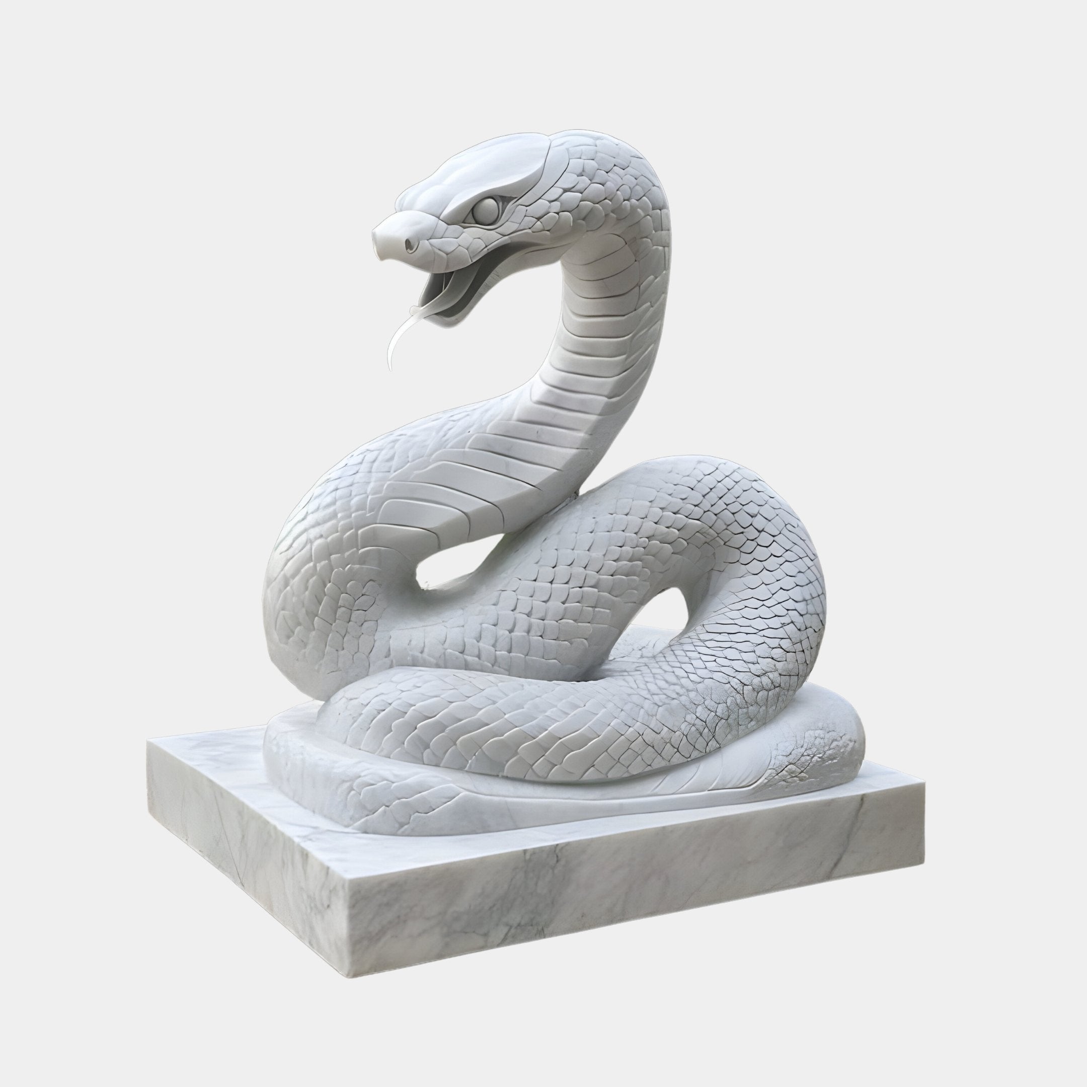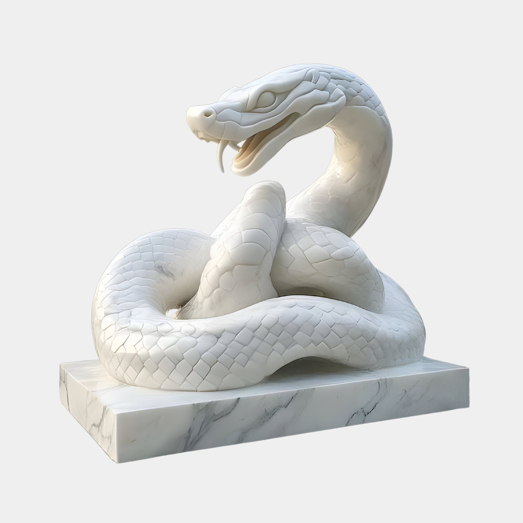 Majestic Snake White Marble Outdoor Sculpture - 100cm