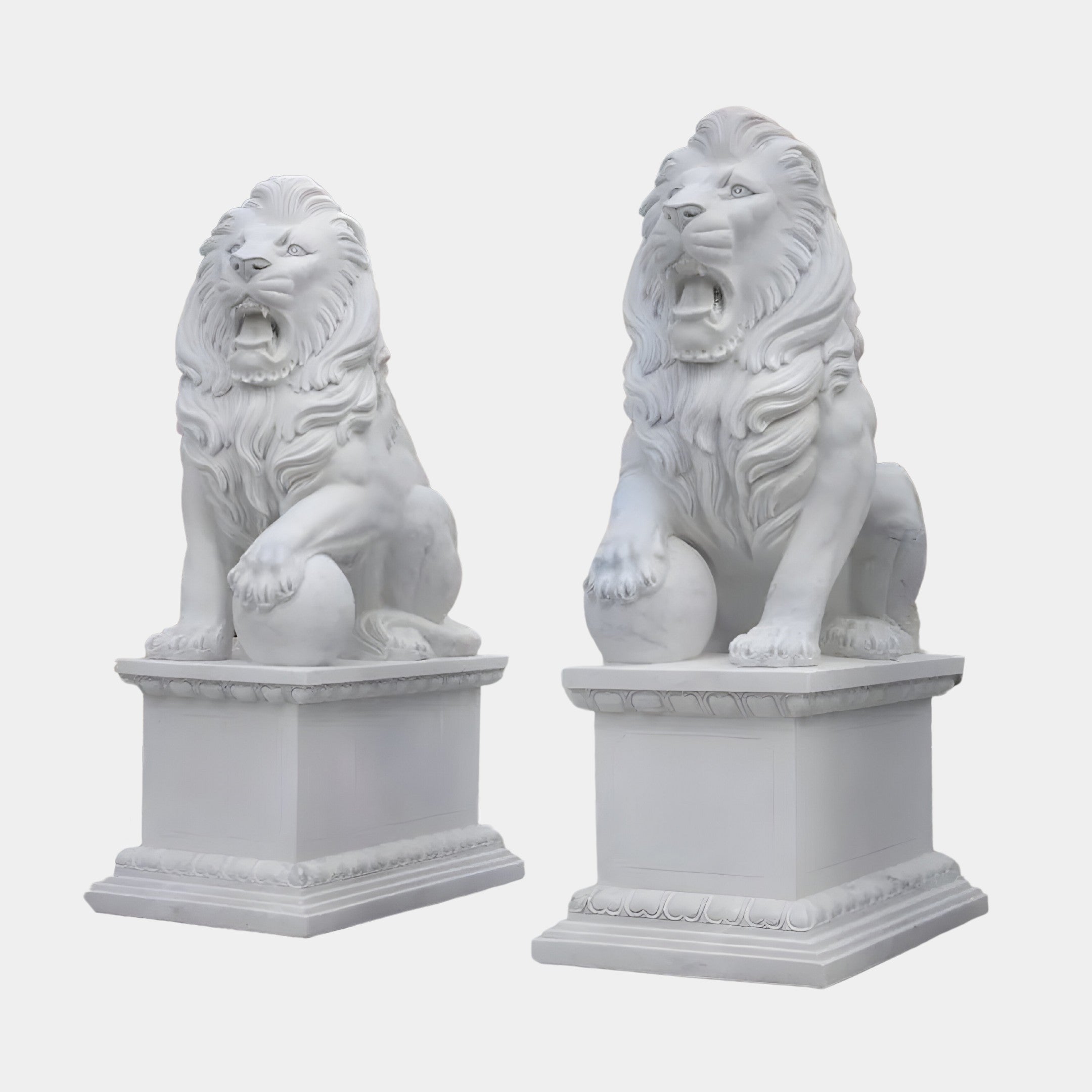 Giant Lion Marble Outdoor Sculpture - 150cm