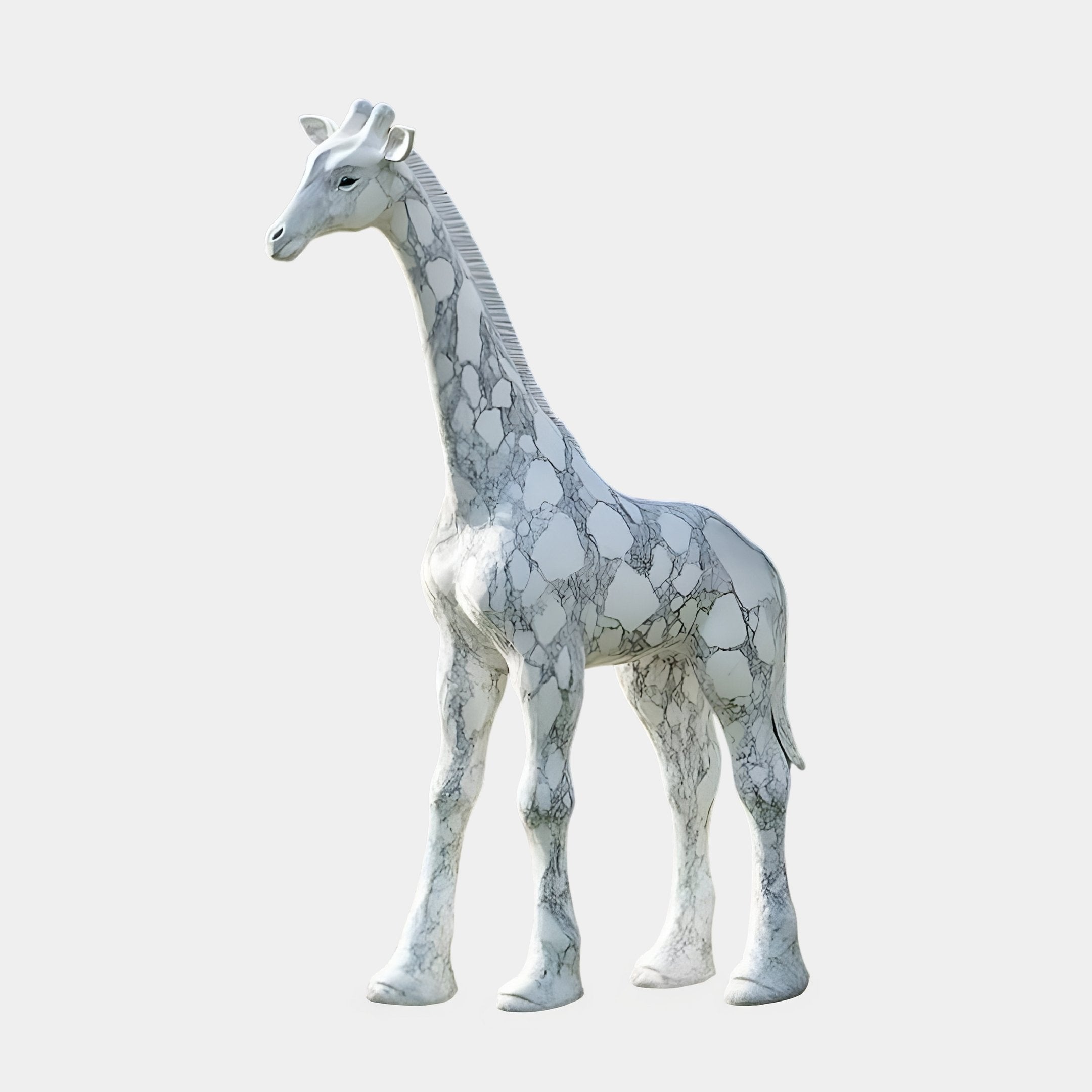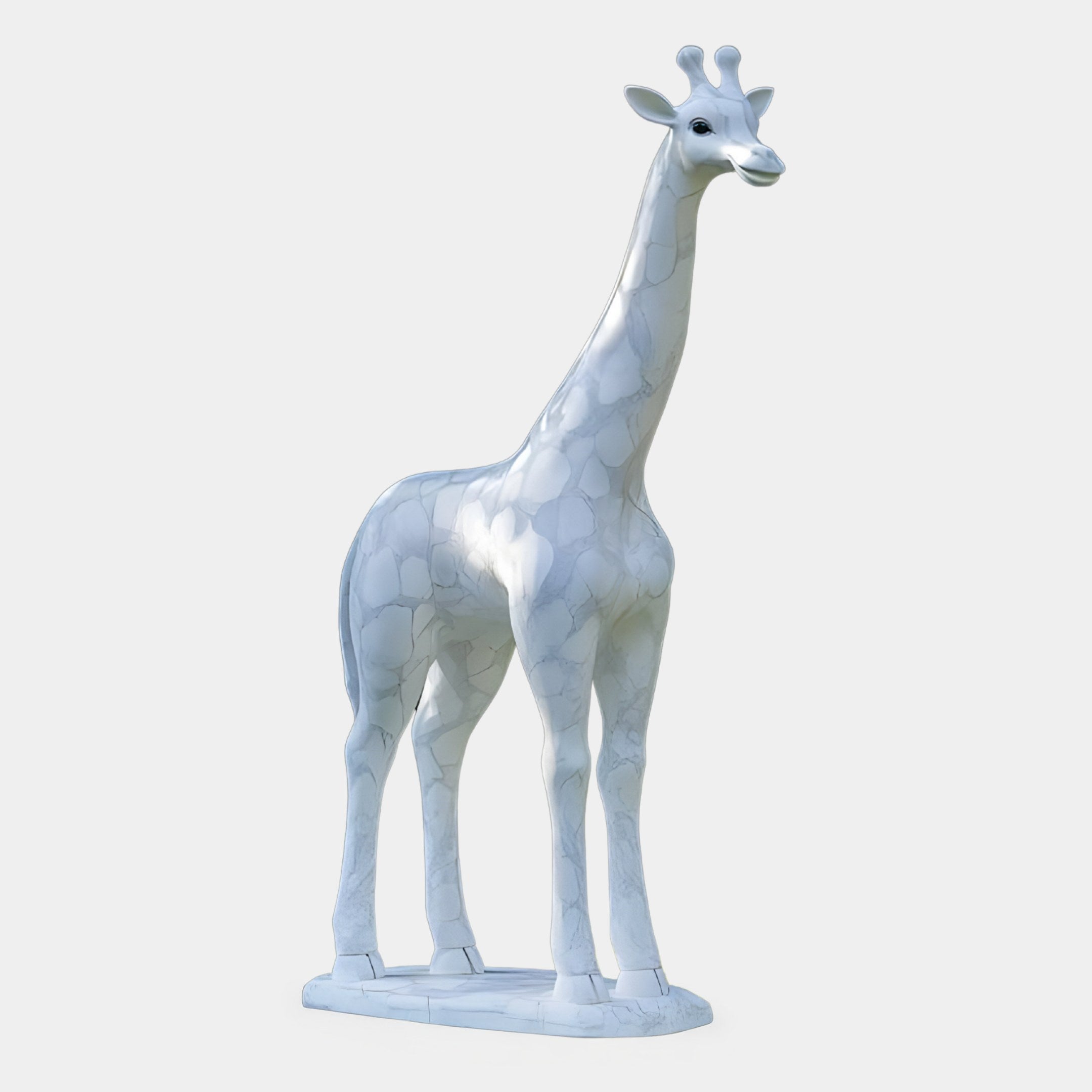 Skyward Grace Giraffe White Marble Outdoor Sculpture - 350cm