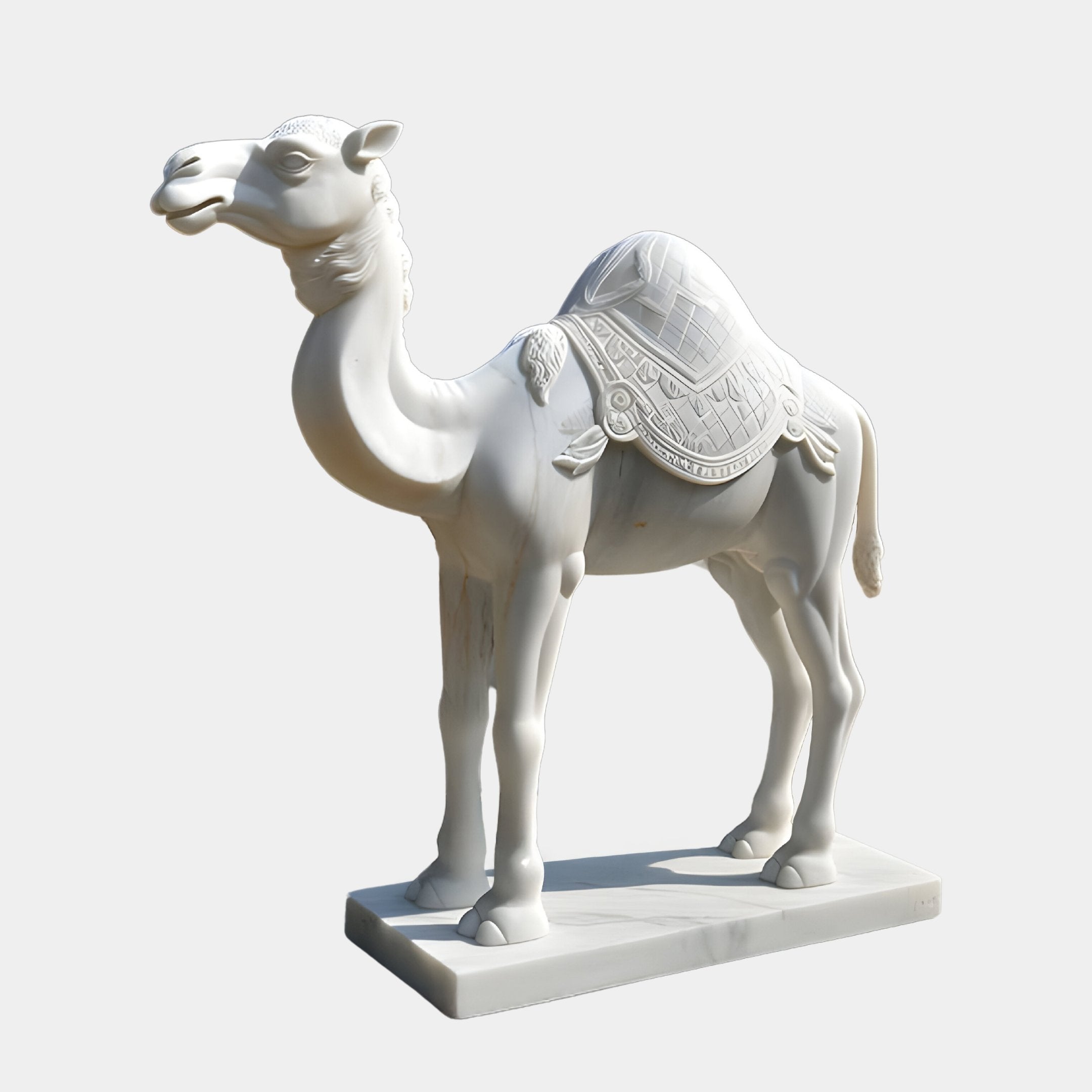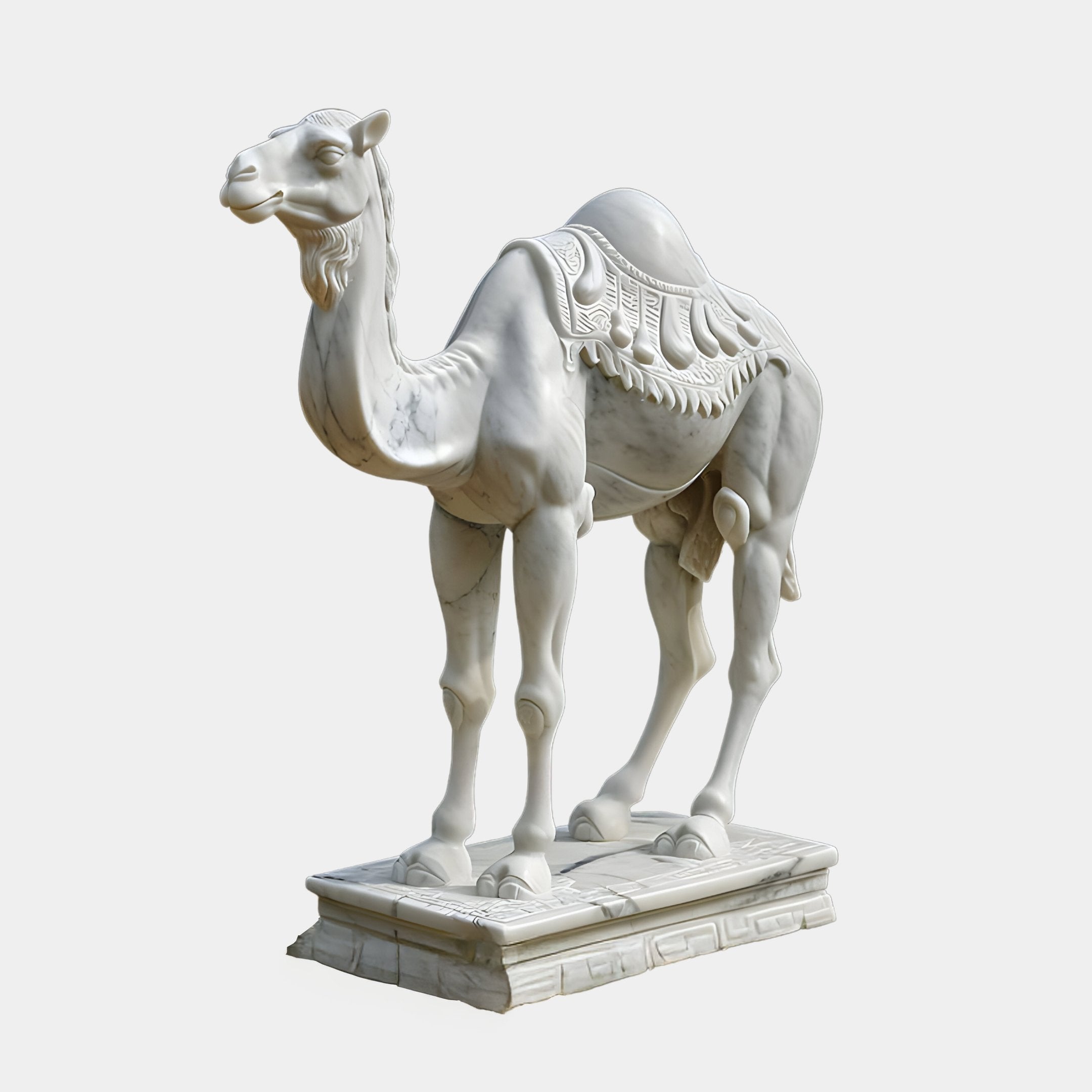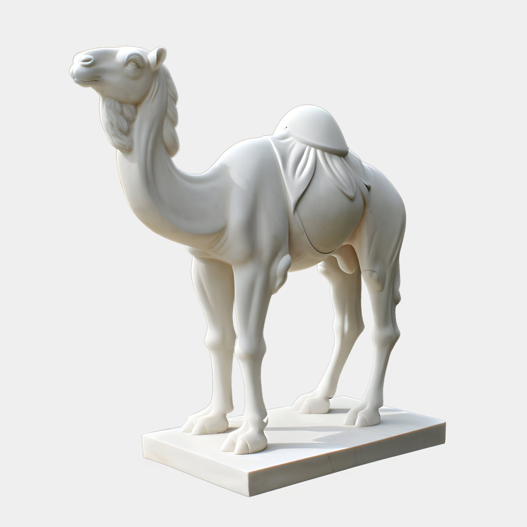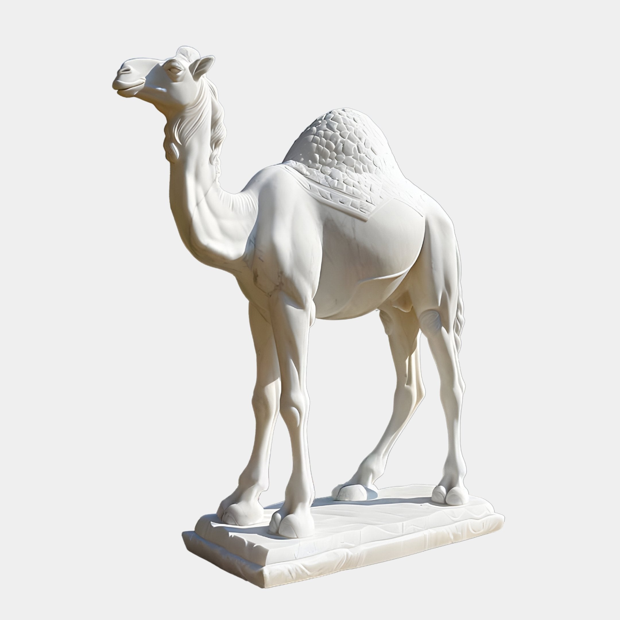 Majestic Camel White Marble Outdoor Sculpture - 160cm