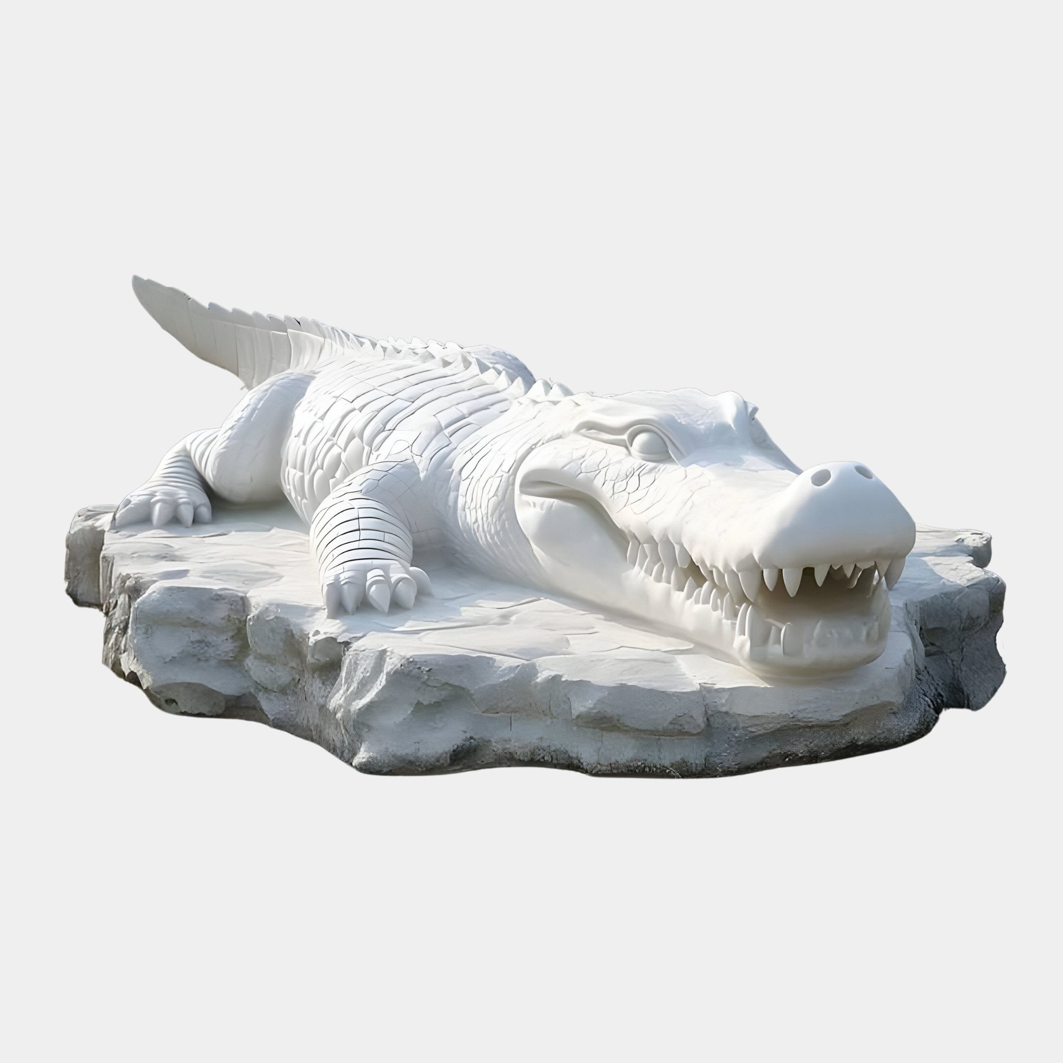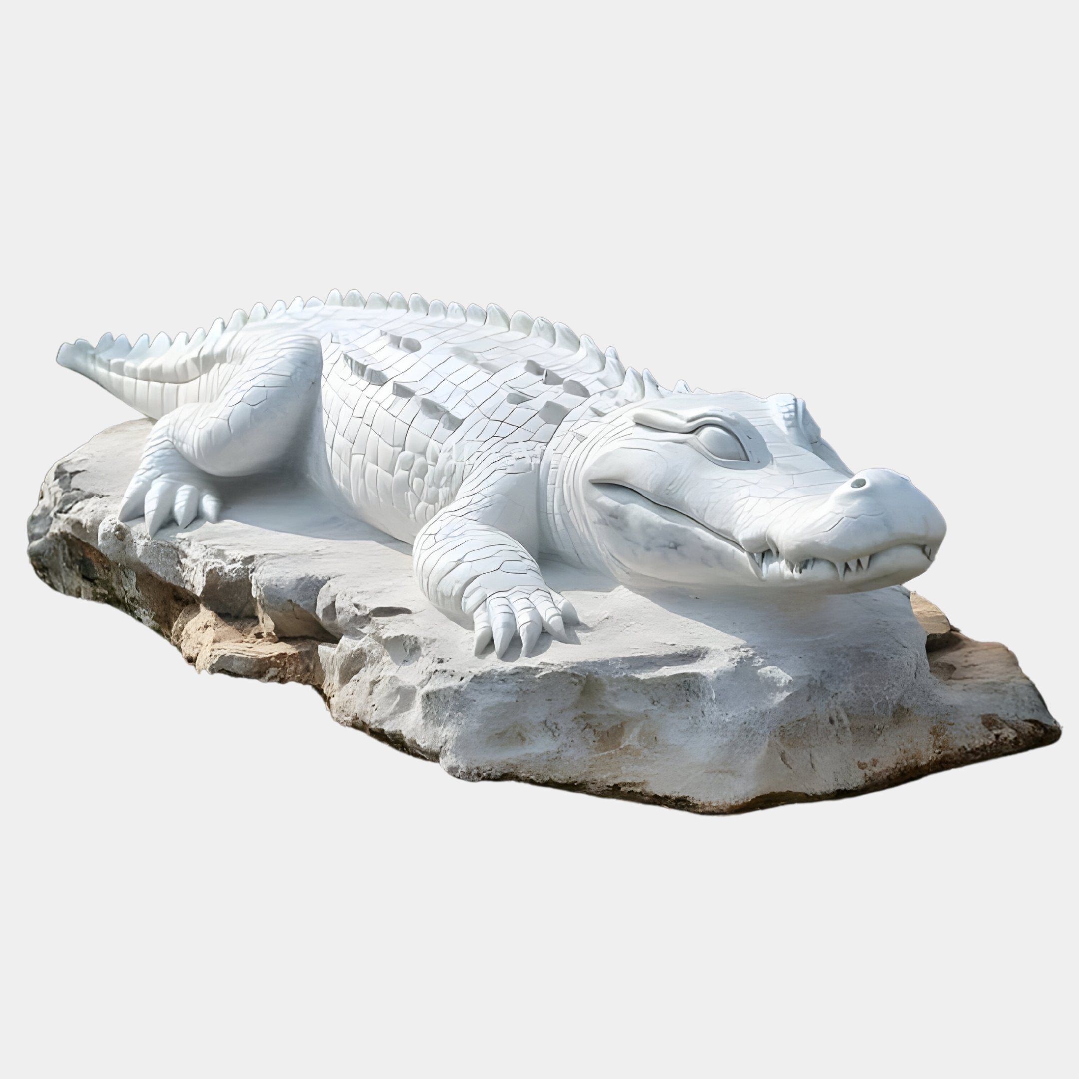 Crocodile II White Marble Outdoor Sculpture - 60cm