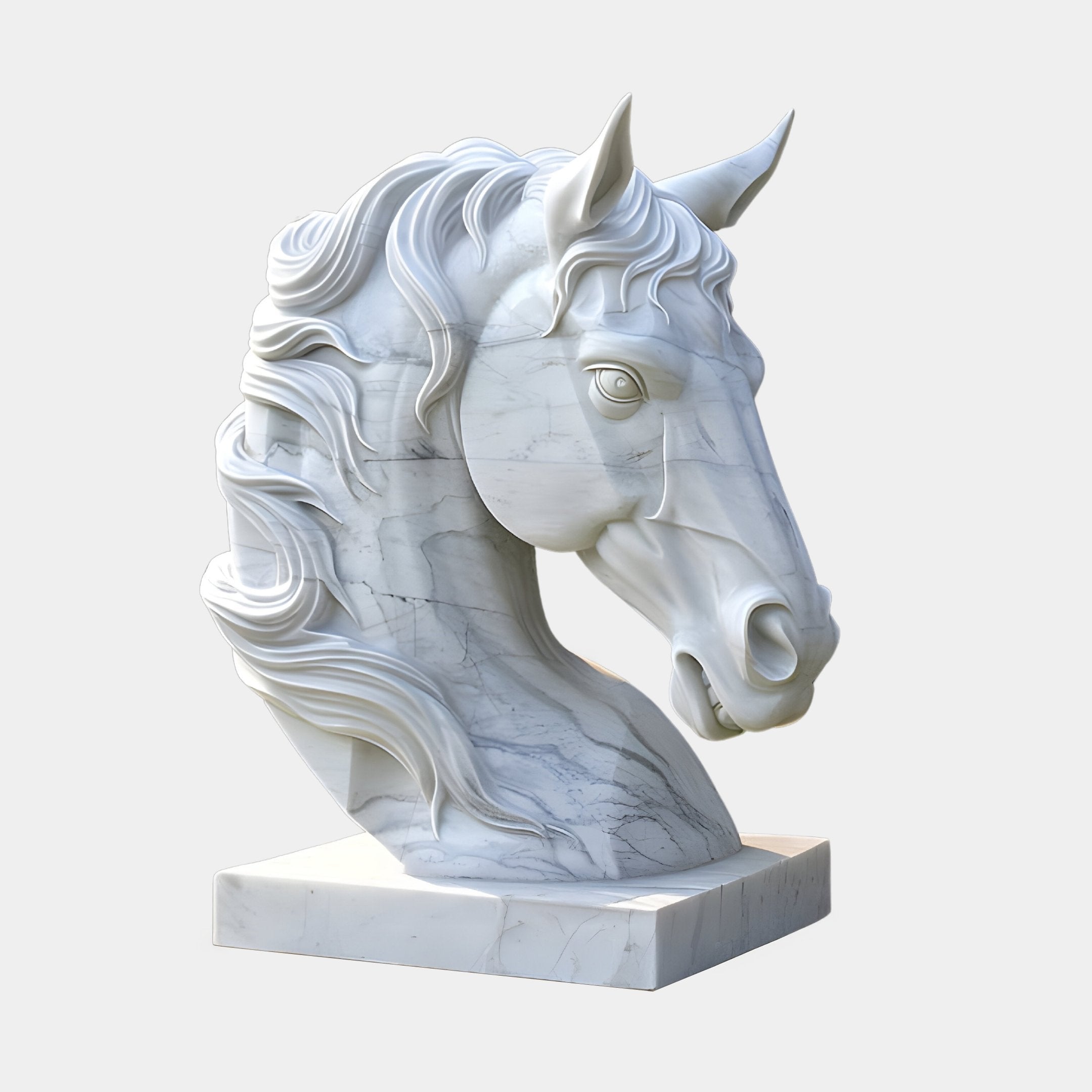 Regal Horse Head White Marble Outdoor Sculpture - 120cm