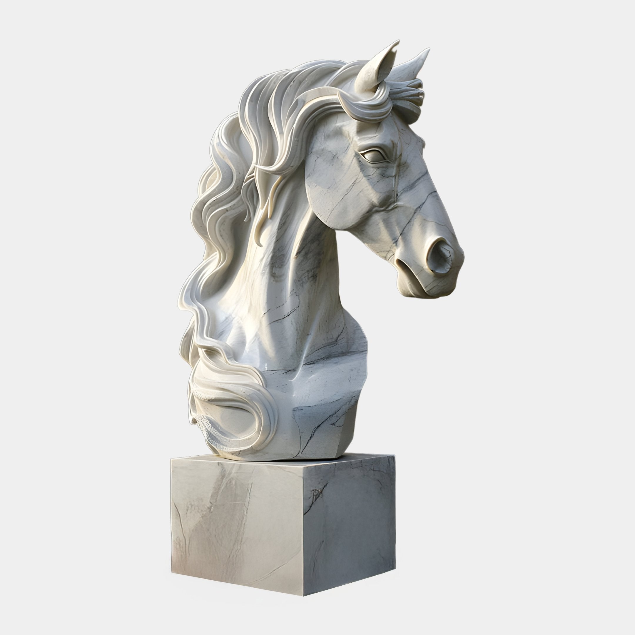 Dynamic Horse Head White Marble Outdoor Sculpture - 80cm